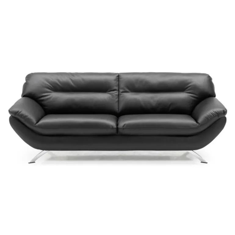 Taastrup 3 personeres sofa i sort kraftigt semianilinlæder, ben i krom og sæde i koldskum, ryg i polydun.