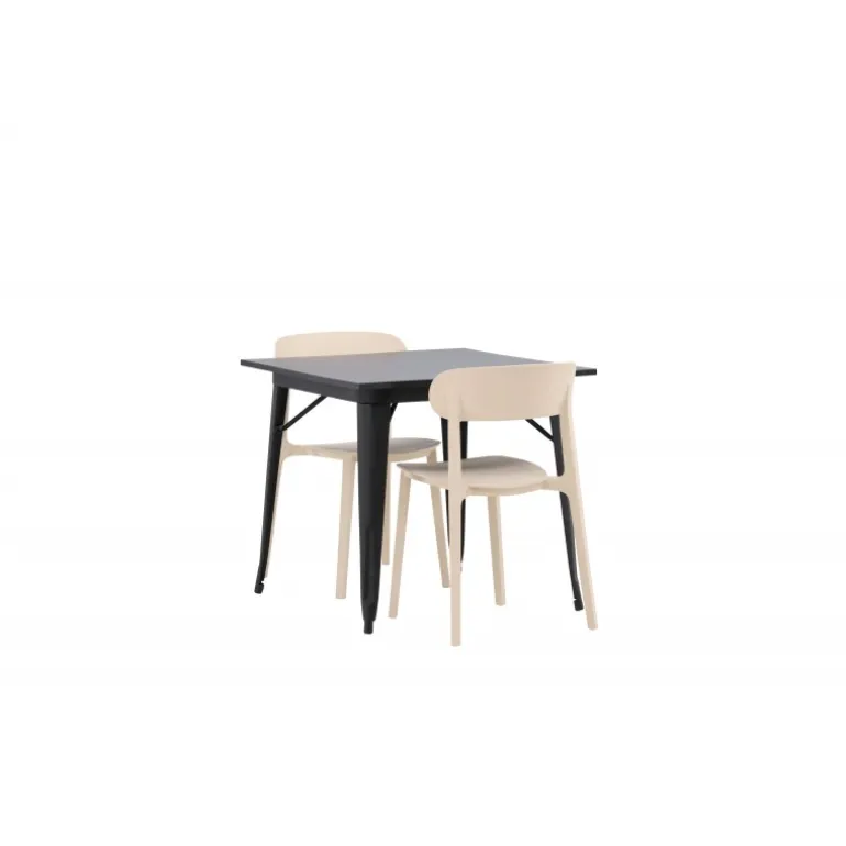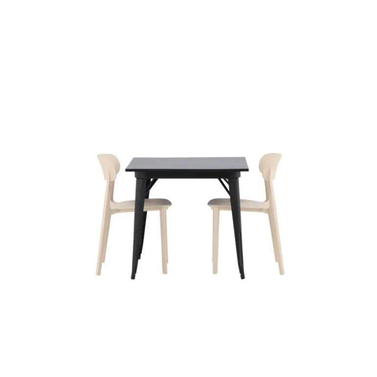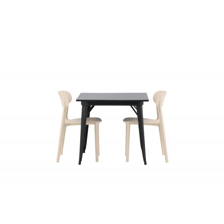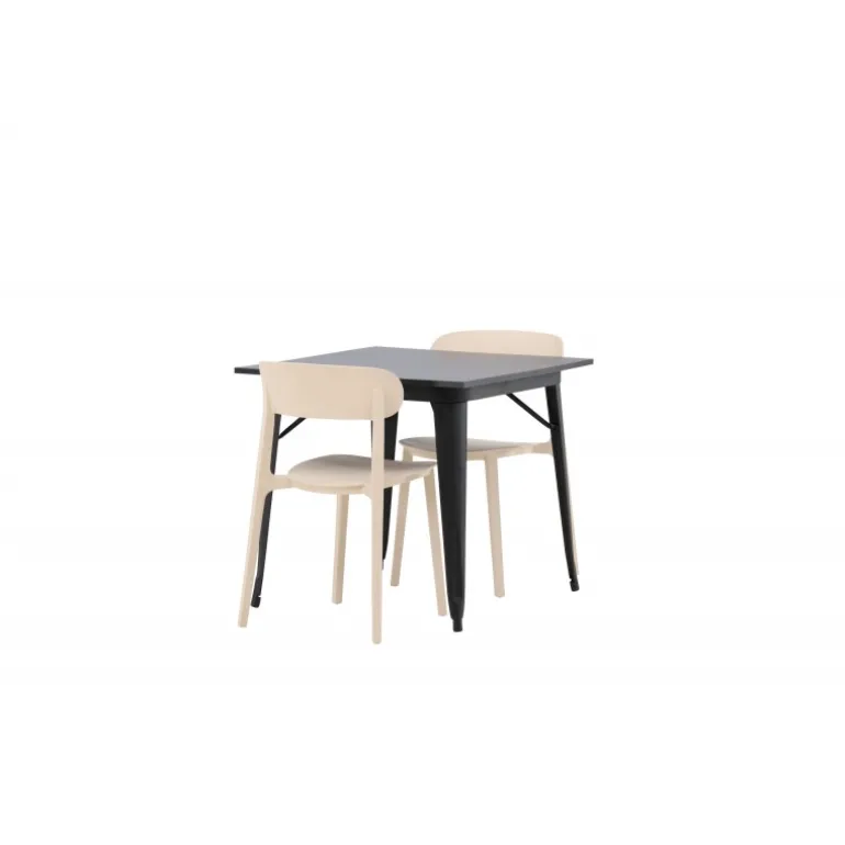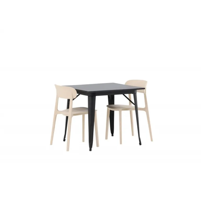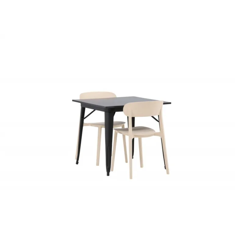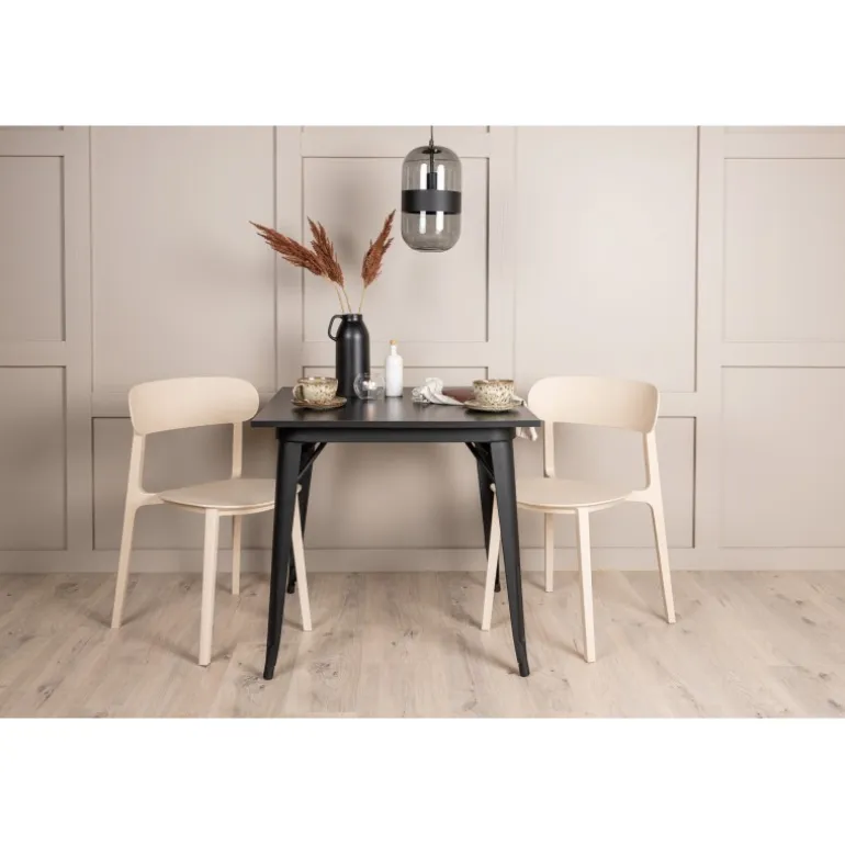 Stilfuld og smart – den perfekte Spisebordssæt til den mindre køkken! Tempe spisebord har et skandinavisk design og klassiske former. Lavet med en kvadratisk bordplade i sort MDF og bordben i sort metal. Her sammen med 2 klassiske spisebordsstole fra Åstol-serien. Stolen er lavet i en smagfuld lys-polished farve i trækomposit med et luftigt design og nordiske lige former. Indret hjertet af hjemmet indbydende og behageligt!
