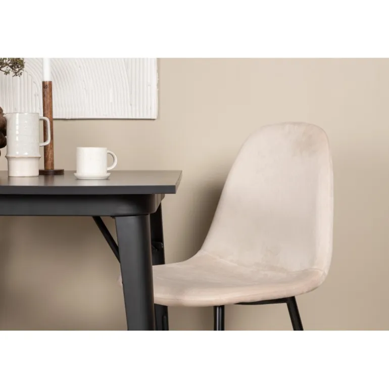- Elegant kombination: Beige velourstole fra Polar-serien med sort pulverlakeret metalben.