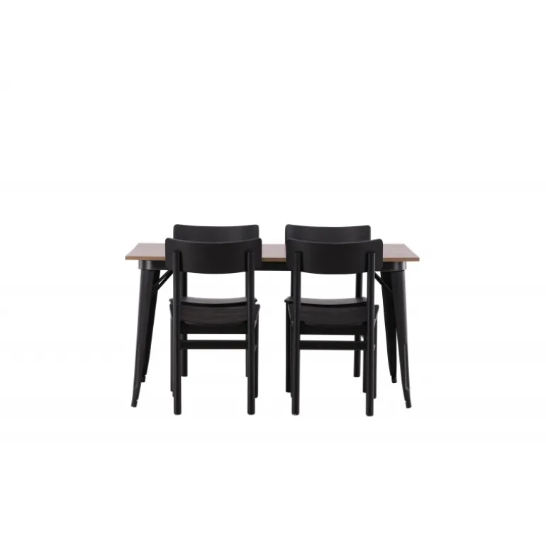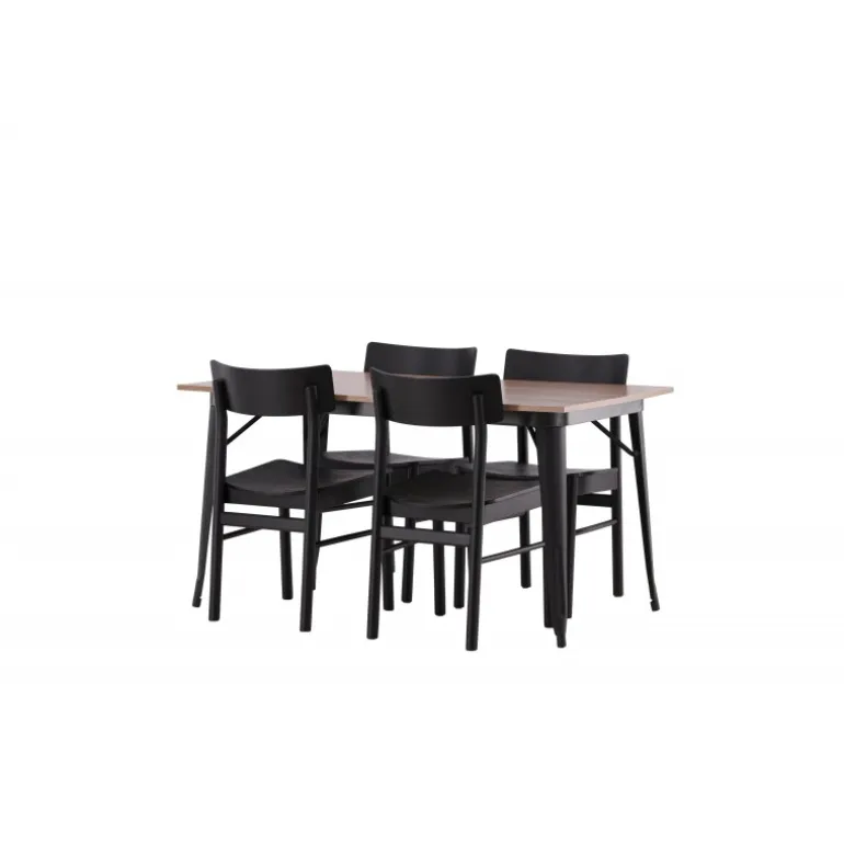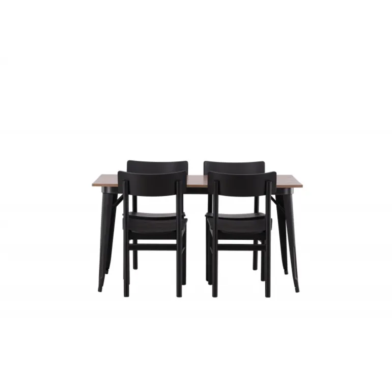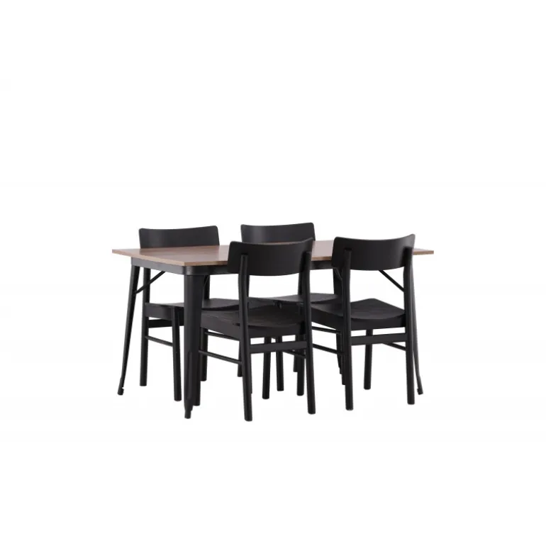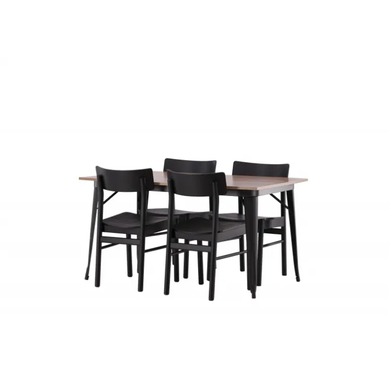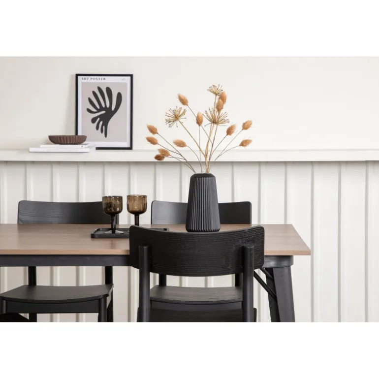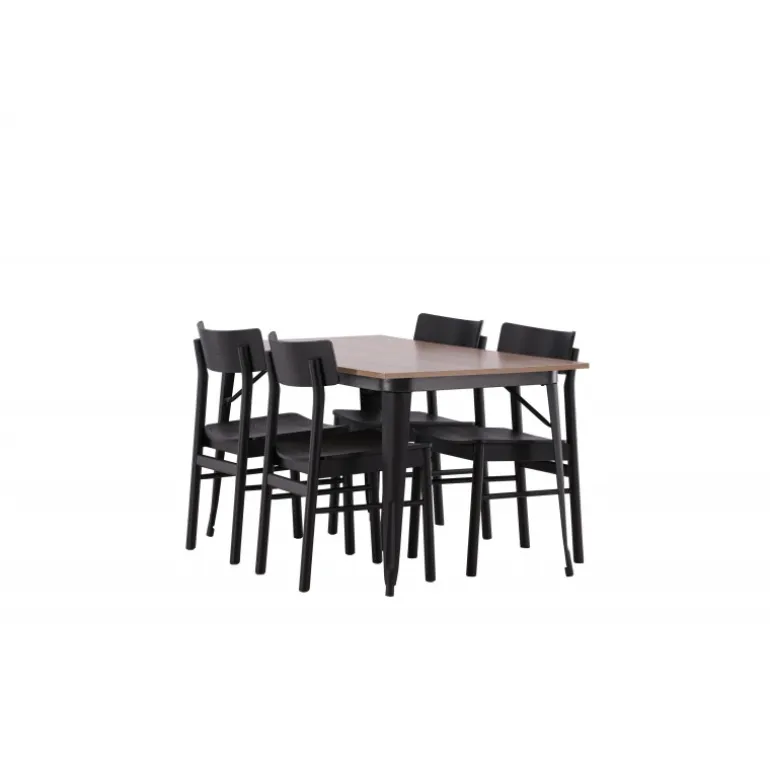En vidunderligt matchende Spisebordssæt med alle de rigtige funktioner! Spisebordet fra Tempe-serien tilhører Venture Home kollektionen og har et iøjnefaldende, skandinavisk design. Fremstillet med en kvadratisk bordplade i sort MDF og bordben i sort metal. Her i perfekt kombination med vores populære spisebordsstole Montros. Stolen har et klassisk og nostalgisk design med lige nordiske former, alt sammen lavet af sort træ. Indret din stue klassisk og indbydende!