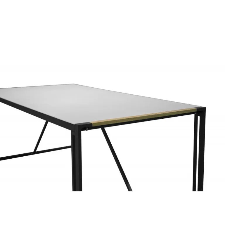 - Trendy design: Rektangulær glasbordplade med teak kant, sort metalunderstel.