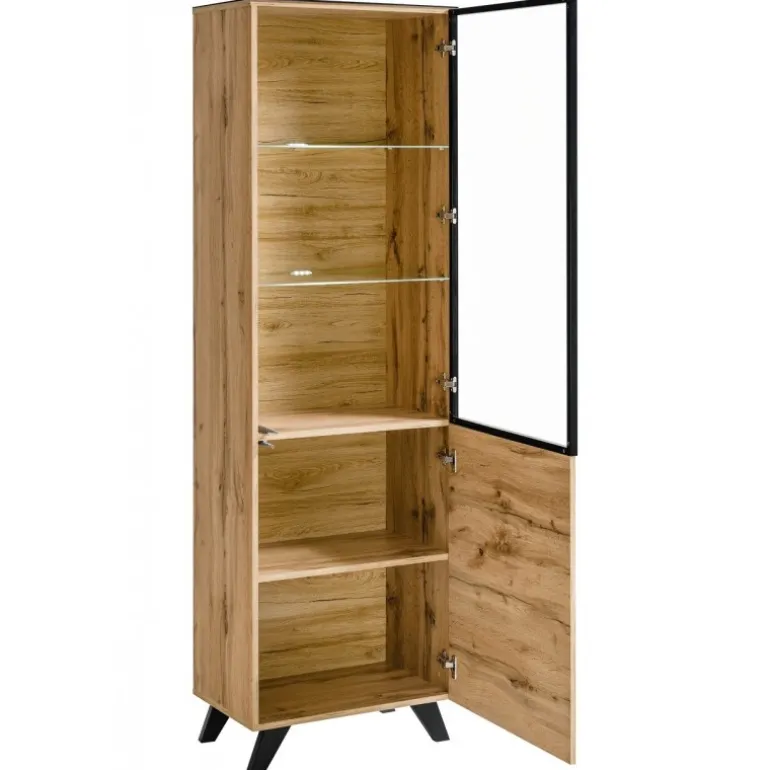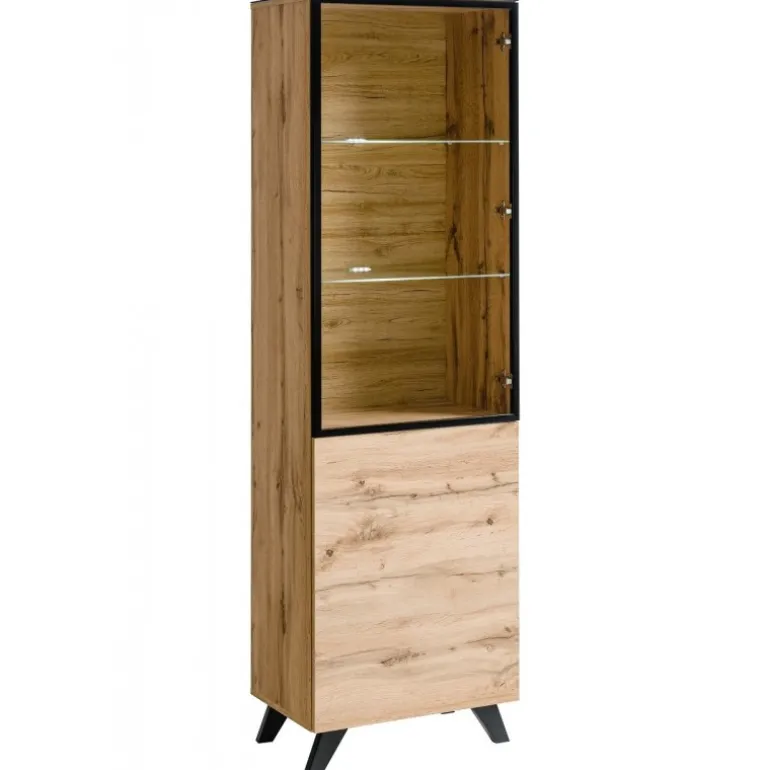 - Høj vitrine med glaslåge og LED-lys