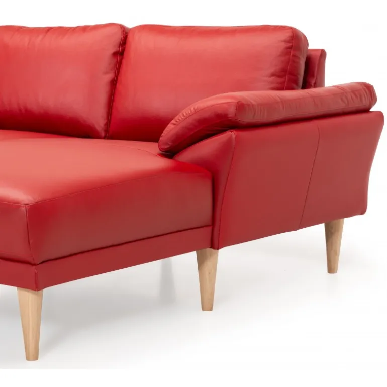 Denne sofa er en skønhed med sin bløde og runde form på armlænene, og de flotte ben muligheder, der giver en luksuriøs følelse til enhver stue. Den er tilgængelig i forskellige lædertyper og farver, der passer til enhver smag og indretning.