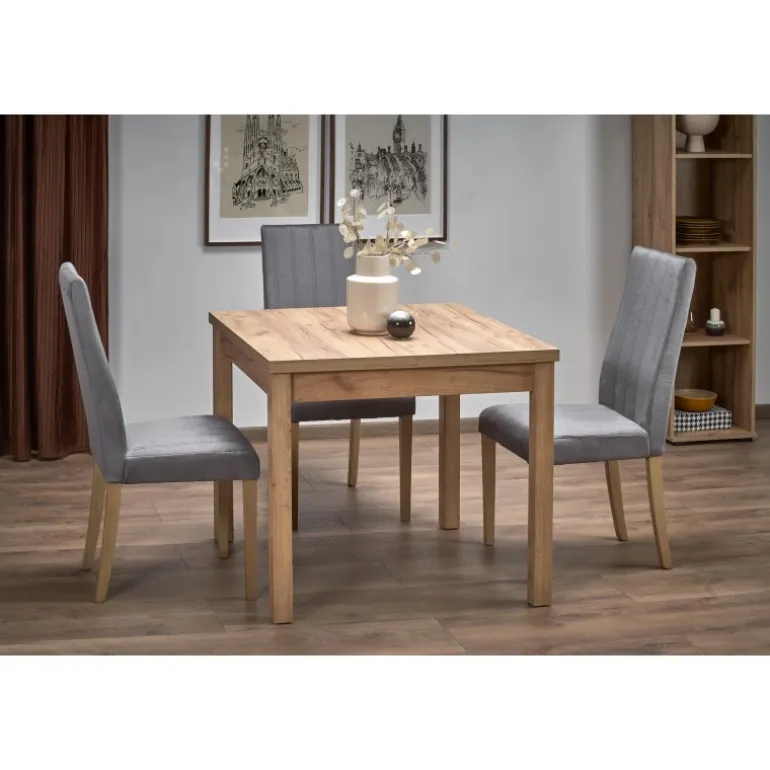 TIAGO SQUARE forlængelsesbordet i håndværk eg er den perfekte løsning til både små og store rum. Med sin fleksible forlængelse kan bordet nemt justeres fra 90 cm til 125 cm, hvilket gør det ideelt til både daglig brug og specielle anledninger. Bordpladen og benene er lavet af høj kvalitet lamineret spånplade og lamineret MDF, hvilket sikrer en robust og holdbar konstruktion. Det elegante design i håndværk eg giver et tidløst udseende, der passer ind i ethvert hjem.