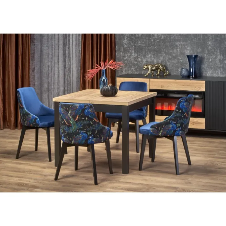 TIAGO SQUARE Spisebord med udtræk er et elegant og funktionelt møbel, der passer perfekt ind i ethvert moderne hjem. Dette Spisebord med udtræk er designet til at give dig maksimal fleksibilitet med dets justerbare dimensioner fra 90 cm til 125 cm i længden, så du nemt kan tilpasse det efter dine behov. Bordpladen er lavet af lamineret spånplade og lamineret MDF, hvilket sikrer holdbarhed og lang levetid. Med en top i craft eg og ben i Sort, bringer dette bord en tidløs æstetik til din spisestue eller køkken.