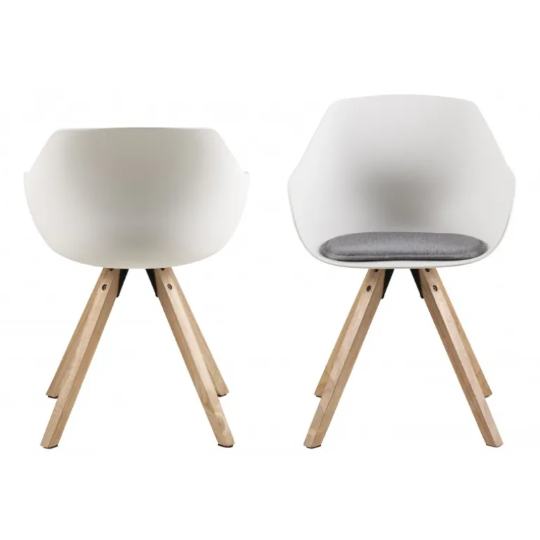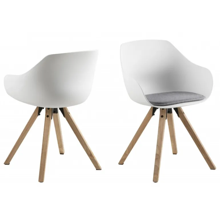 Tina spisebordsstol plastik hvid, hynde løs, Malmo lysegrå 90, centerben gummitræ, egebejdset, olie, Prisen er pr stol, du skal derfor mindst købe 2 stole. Dvs. Minimumskøb er 2. stk. Dog er prisen stadig angivet pr. stk.