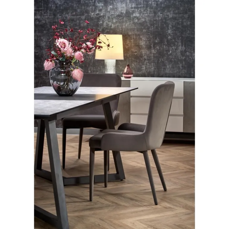 Oplev TIZIANO Spisebord med udtræk – den perfekte løsning til både små og store sammenkomster. Dette elegante bord har en justerbar længde fra 160 cm til 210 cm, hvilket gør det ideelt til enhver spisesituation. Med en overflade i glas og lakeret MDF samt ben i pulverlakeret stål, kombinerer dette bord stil og holdbarhed. Den lyse grå og mørke grå top sammen med de mørke grå ben passer perfekt ind i ethvert moderne hjem.