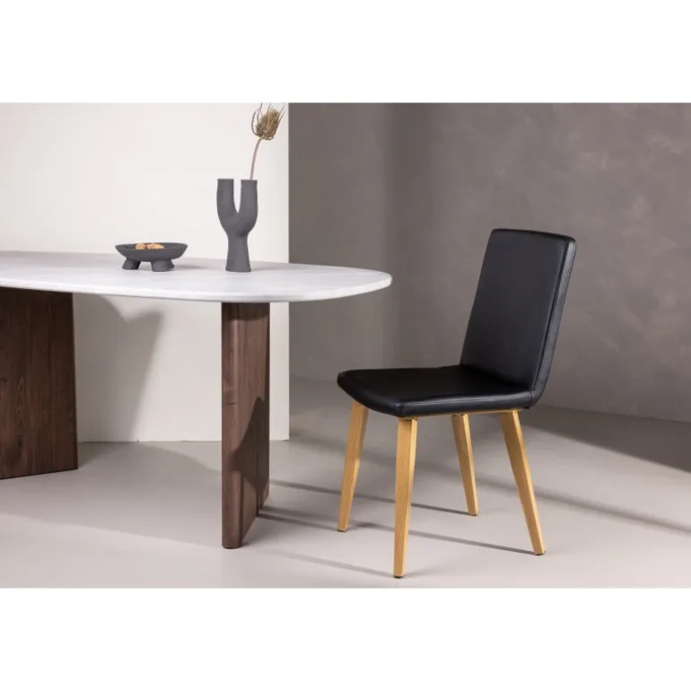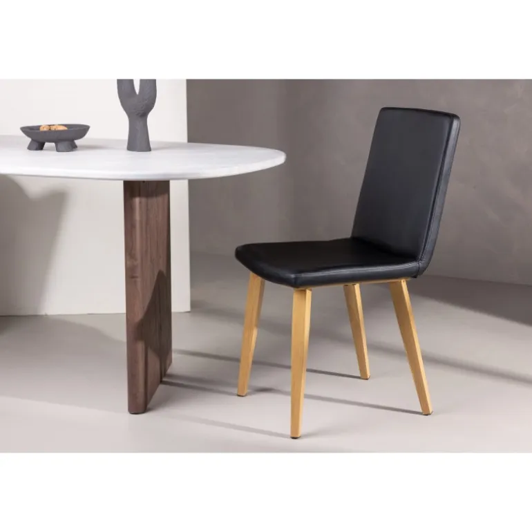 Den klassiske spisebordsstol Today har lige, nordiske former og en dristig, fuldt betrukket sæde i sort kunstlæder. Stolens ben er let udfladede i naturligt træ og giver et stabilt indtryk. Det gennemtænkte design er både moderne og tidløst. Match med et flot spisebord for at få en komplet spisestuegruppe til dine hyggelige måltider fremover!