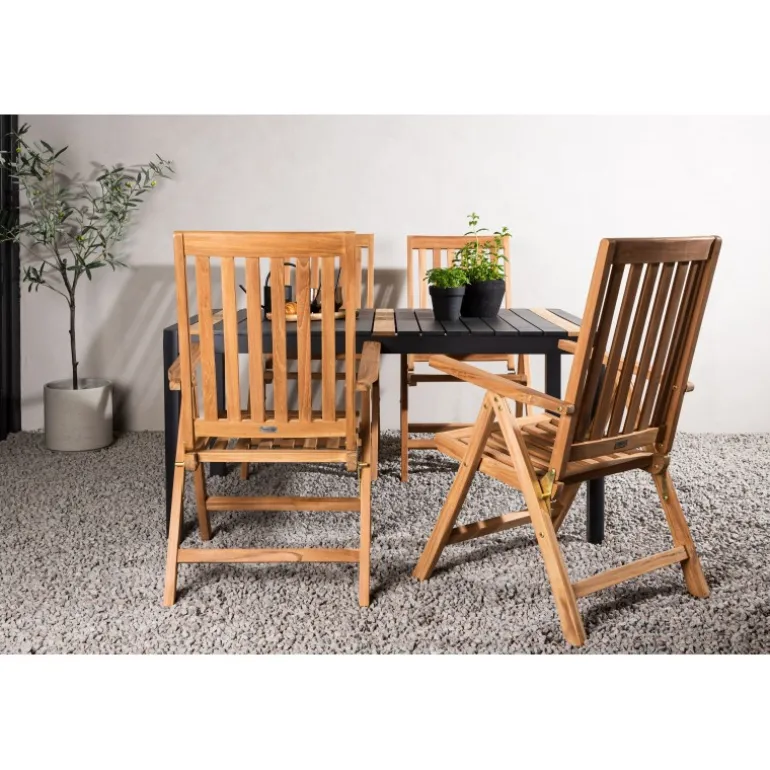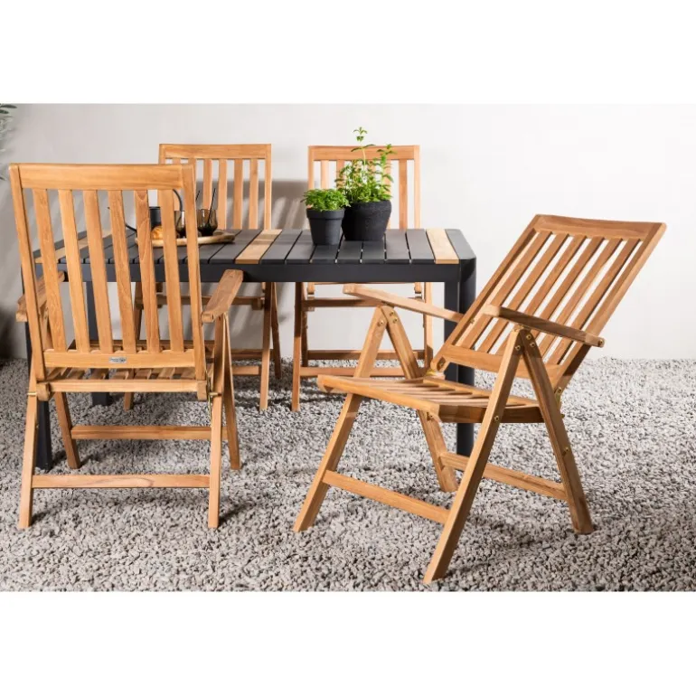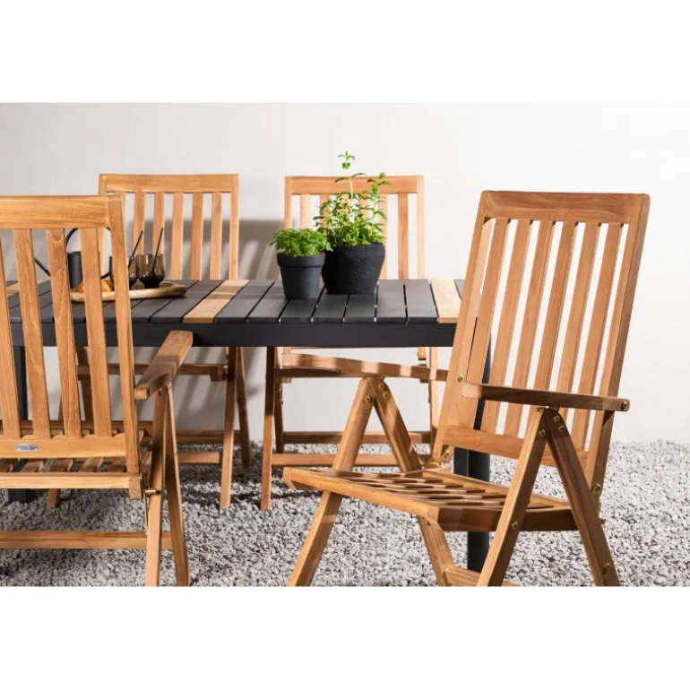 - Materiale: Teak og aluminium for holdbarhed og stil.