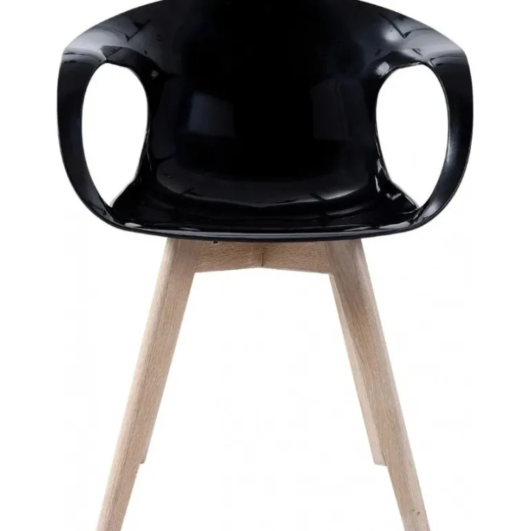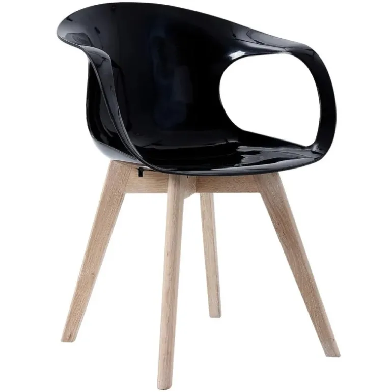 Tomcat spisebordsstol med blank sort plast sæde, og egetræsstel.