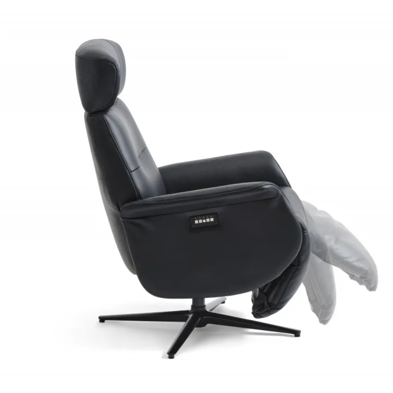To motorer for justerbar komfort: Uafhængig kontrol af ryglæn og fodstøtte for personlig tilpasning. Eksklusivt semi-anilin læder: Sort læder, der tilføjer en sofistikeret og tidløs stil. Komfortabel siddeoplevelse: Polstrede sæder og rygstøtter med høj densitetsskum for maksimal støtte. Elegant design: Kombinerer sort læder med børstet aluminium for et moderne look. Robust konstruktion: Metalstel og aluminium base sikrer stabilitet og holdbarhed. Ikke-aftagelige betræk: Nemt at vedligeholde og bevare stolens originale udseende.