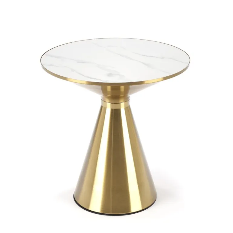 TRIBECA sofabord er den perfekte kombination af moderne design og funktionalitet. Med sin elegante hvid marmor overflade og stilfulde guldfinish tilføjer dette sofabord et luksuriøst præg til ethvert rum. Bordet er fremstillet af keramisk materiale og rustfrit stål, hvilket sikrer både holdbarhed og en tidløs æstetik. Med dimensionerne fi 50/52 cm passer det perfekt til stuer, hvor pladsen er en overvejelse. Dette sofabord vil hurtigt blive midtpunktet i dit hjem og et sted, hvor du kan nyde dine yndlingsdrikkevarer eller dekorere med smukke genstande.