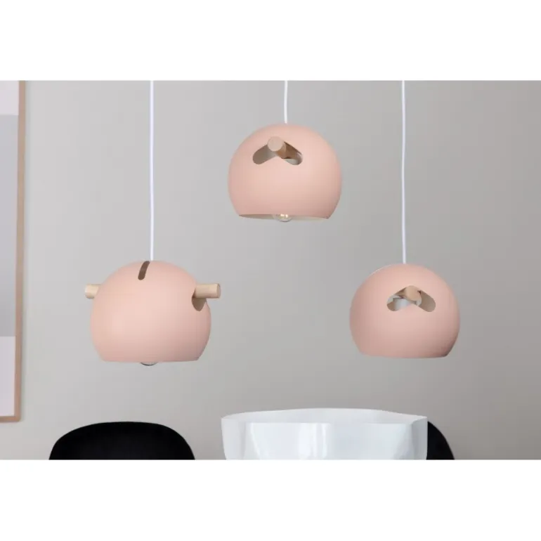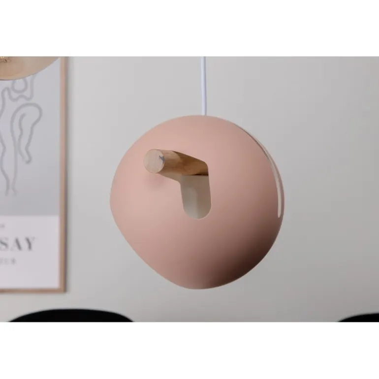 Denne loftlampe fra Tubbie-serien vil være en flot interiør detalje og en praktisk lyskilde! Den bløde form af de tre lyskilder og den trendy støvede rosa farve med detaljer i valnød skaber en varm og rolig atmosfære i rummet. Den matchende beslag i loftet skaber et smukt helhedsindtryk. Placer lampen over spisebordet og nyd behagelig belysning.
