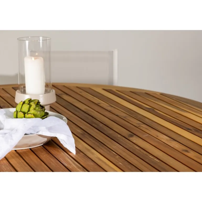 - Naturligt materiale: Bordet er fremstillet af akacietræ, hvilket tilføjer varme og gæstfrihed til dit rum.
