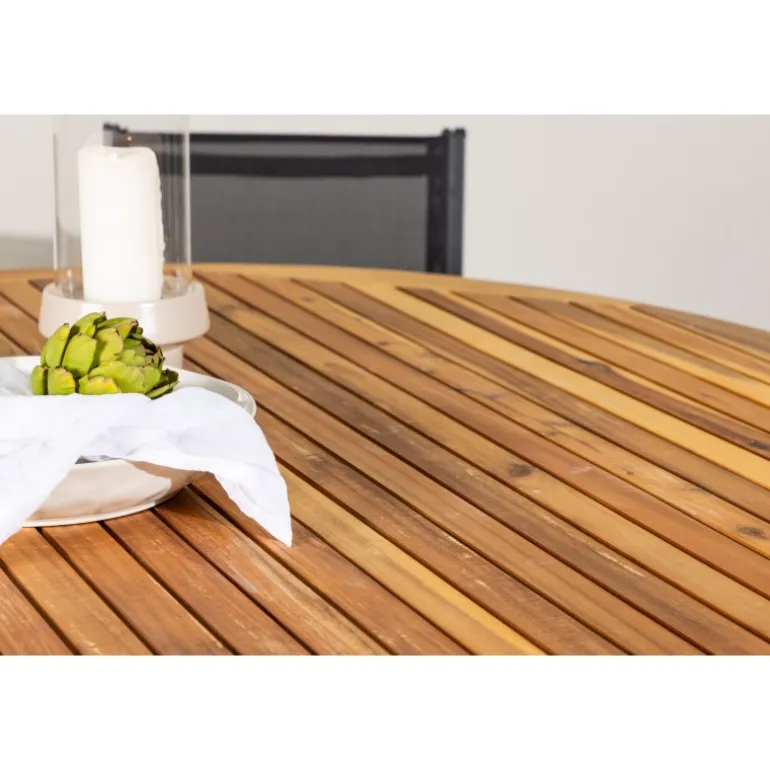 - Naturlig atmosfære: Tucuman bordet er lavet af acacia træ, som tilføjer en naturlig og indbydende følelse til dit udendørs område.