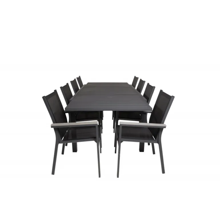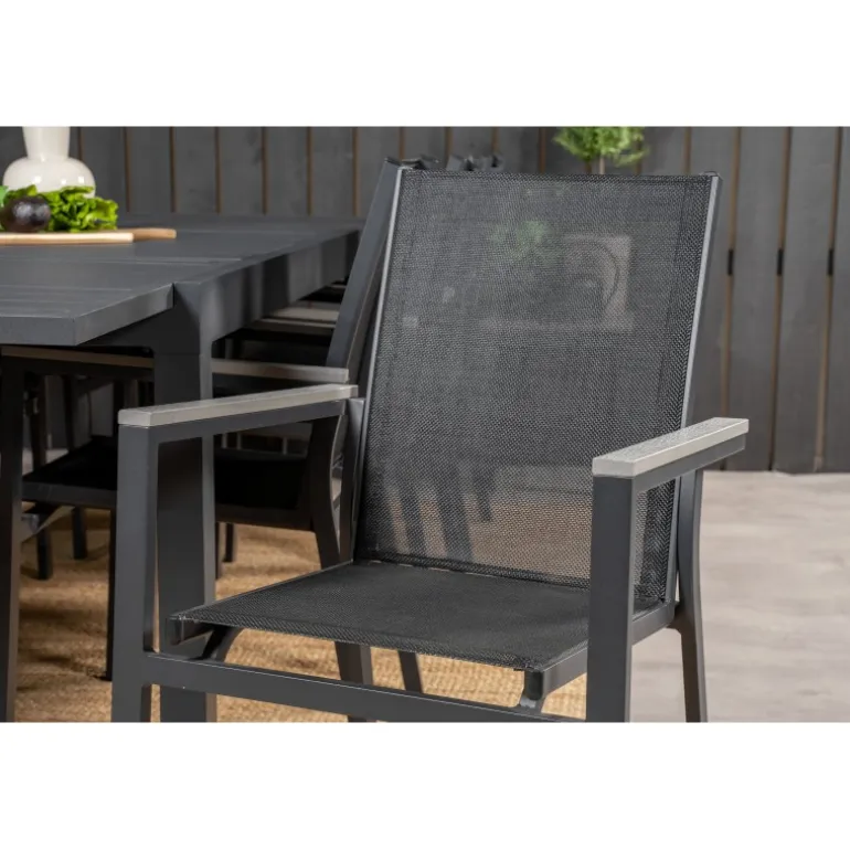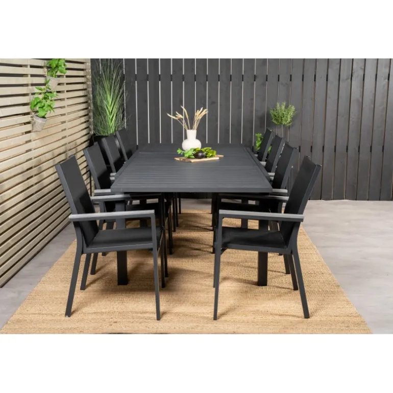 Spisebordet Marbella i en stilfuld, moderne og udvidelig design. Til bordet medfølger vores Stt-venlige spisebordsstole Parma. Her får du en kombination, der skaber en moderne og indbydende følelse til udendørsområdet eller altanen. Udvid dine middagsinvitationer og undgå bekymringer om plads til alle. Bliv klar til udendørssæsonen med os!