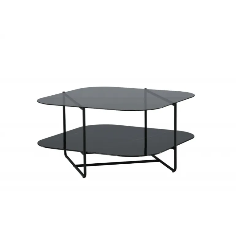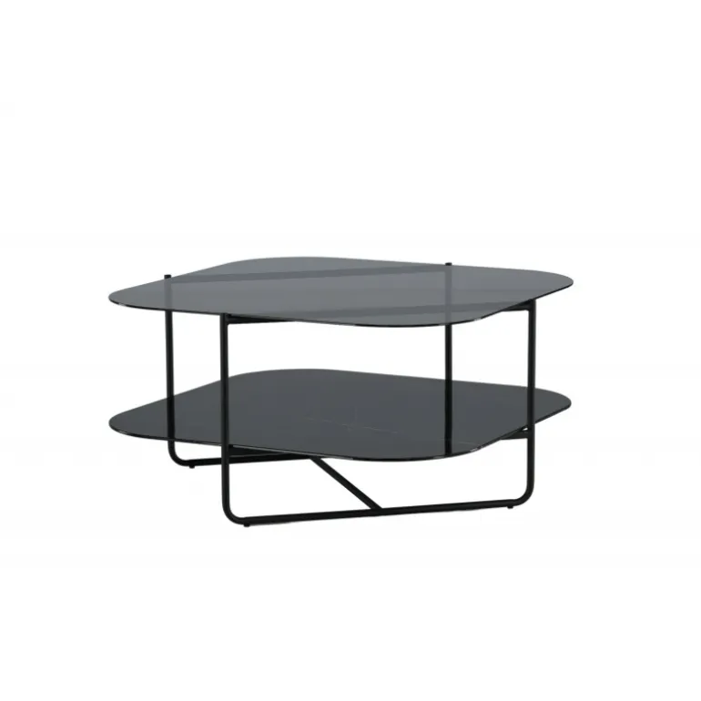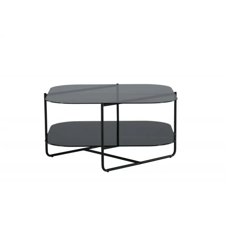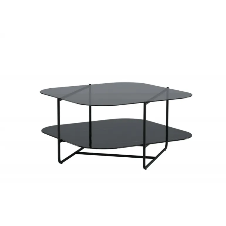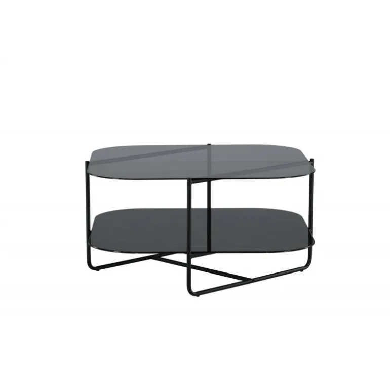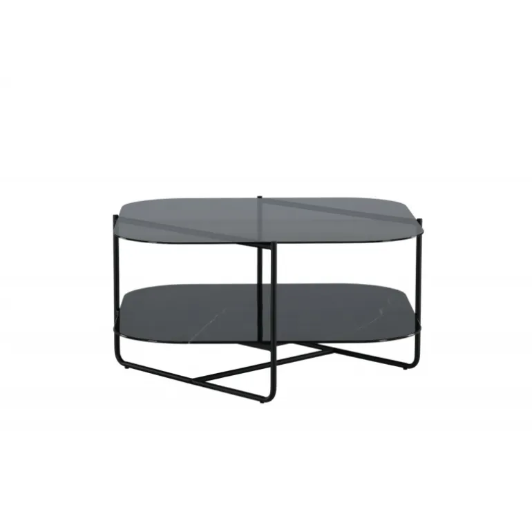 Skab en stilbevidst atmosfære i stuen med dette iøjnefaldende sofabord fra UN-Line serien! Bordets design ånder af modernitet med sin slanke konstruktion og smalle ramme i sort metal, som bidrager til et luftigt og minimalistisk udseende. Toppladen er i røgfarvet sort glas, og de synlige hylder er lavet af smuk sort marmorglas – både elegant og praktisk. UN-Line bliver en stilfuld ikon foran sofaen og vil garanteret hæve indretningsniveauet i dit hjem. Bordets dimensioner: 85x85x45 cm.
