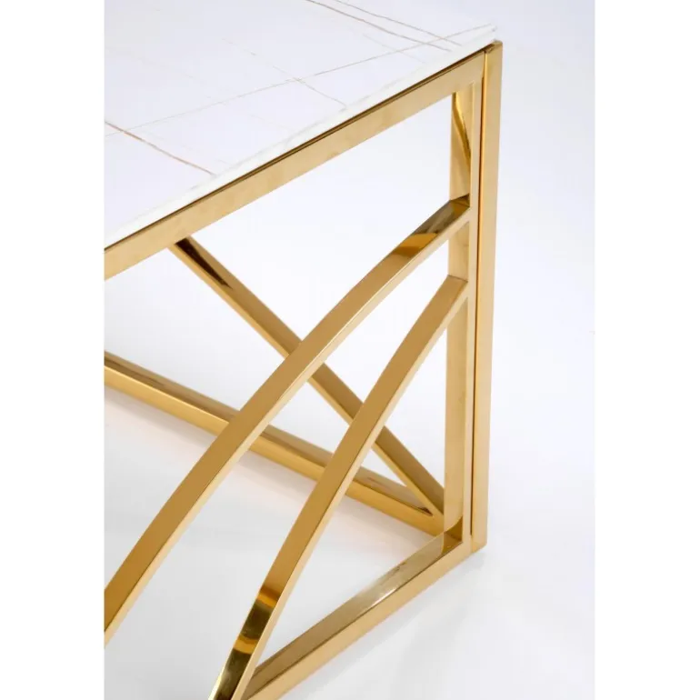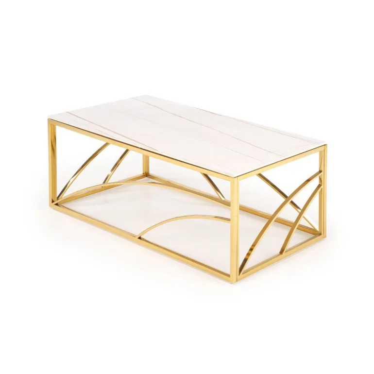 Oplev elegance og funktionalitet med UNIVERSE 2 sofabordet, perfekt til enhver moderne stue. Dette sofabord er fremstillet af holdbart sinteret sten og har en robust ramme af pulverlakeret stål, der sikrer langvarig brug. Den smukke hvide marmoreffekt kombineret med gulddetaljer tilfører et strejf af luksus til dit hjem. Med dimensionerne 120/60/45 cm passer dette bord ideelt ind i både små og store rum, og dets tidløse design gør det let at integrere med forskellige indretningsstile.