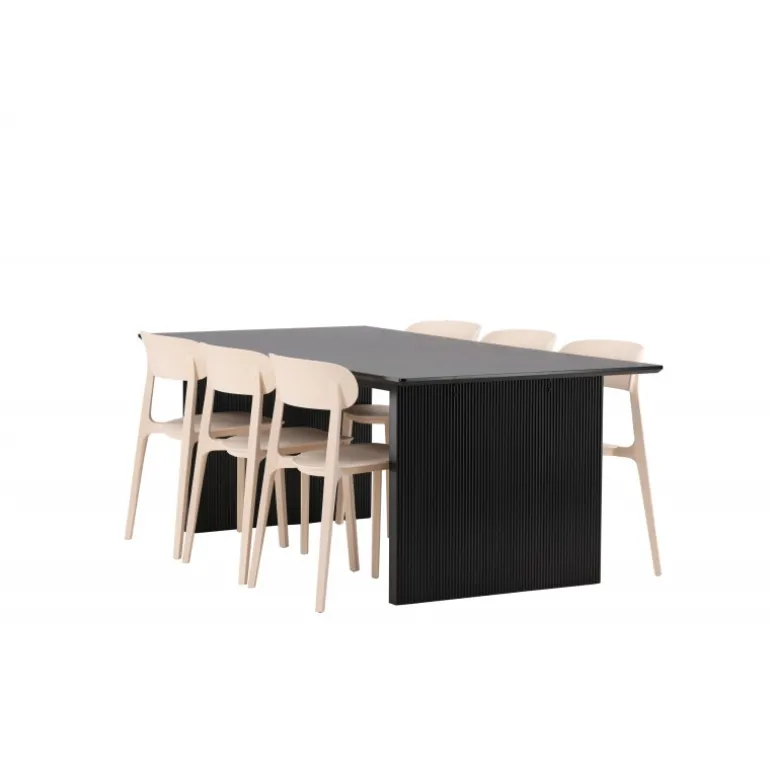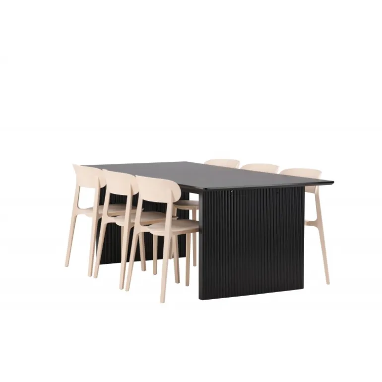 - Kombination: Bord og stole matcher perfekt i stil og farve.