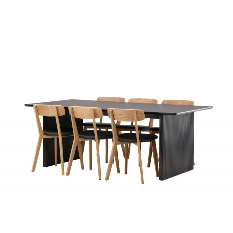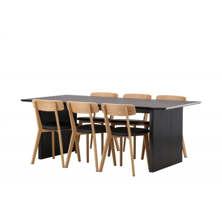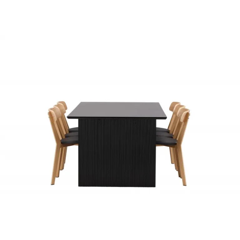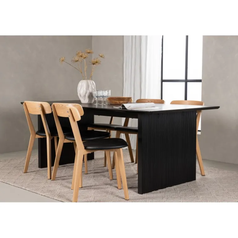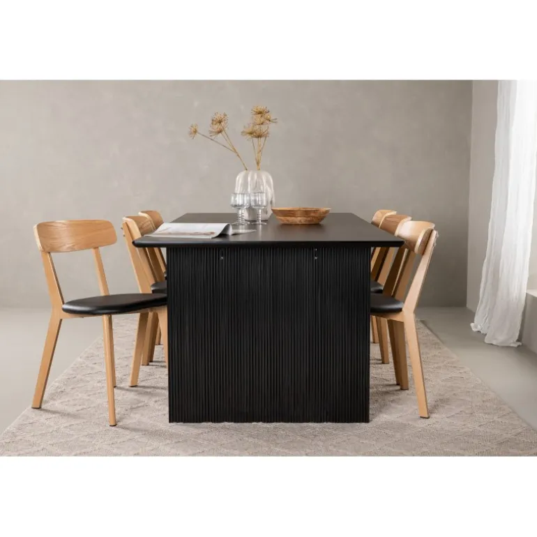 - Kombineret med Sanjos spisestole i sort PU-stof og naturtræ.