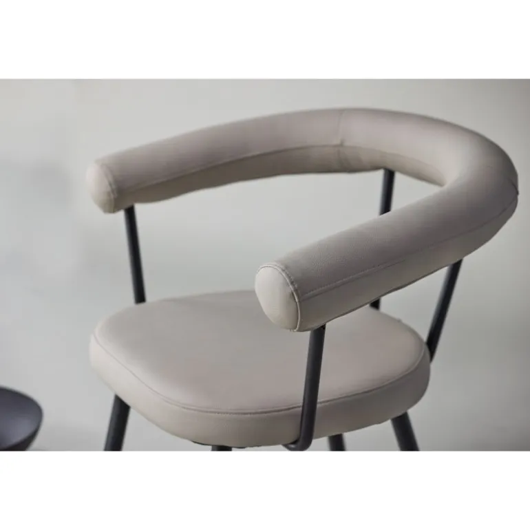 Denne lækre spisebordsstol i moderne og gennemtænkt design er lige så behagelig som stilfuld! Stolen fra serien Vasterås tilhører Lustig-kollektionen og skaber hurtigt et luksuriøst indtryk i hjemmets hjerte. Den afrundede ryg og den stoppede sæde er i den lækre off-white PU polstring, og rammestrukturen i minimalistisk design er i sort stål. Dekorer dit hjem med spisebordsstole, du gerne vil sidde i længe og nyde hyggelige måltider med dine kære!