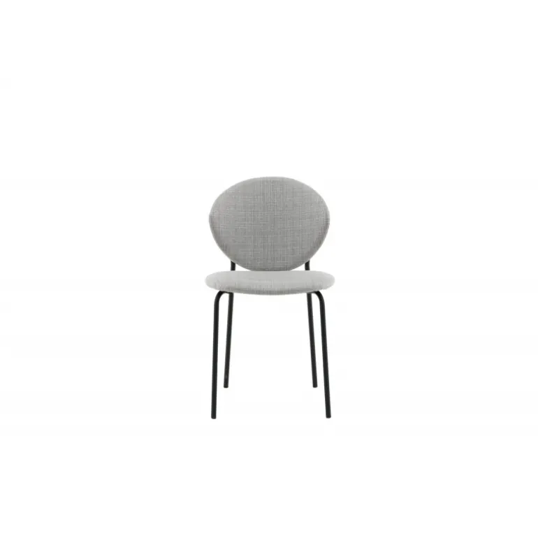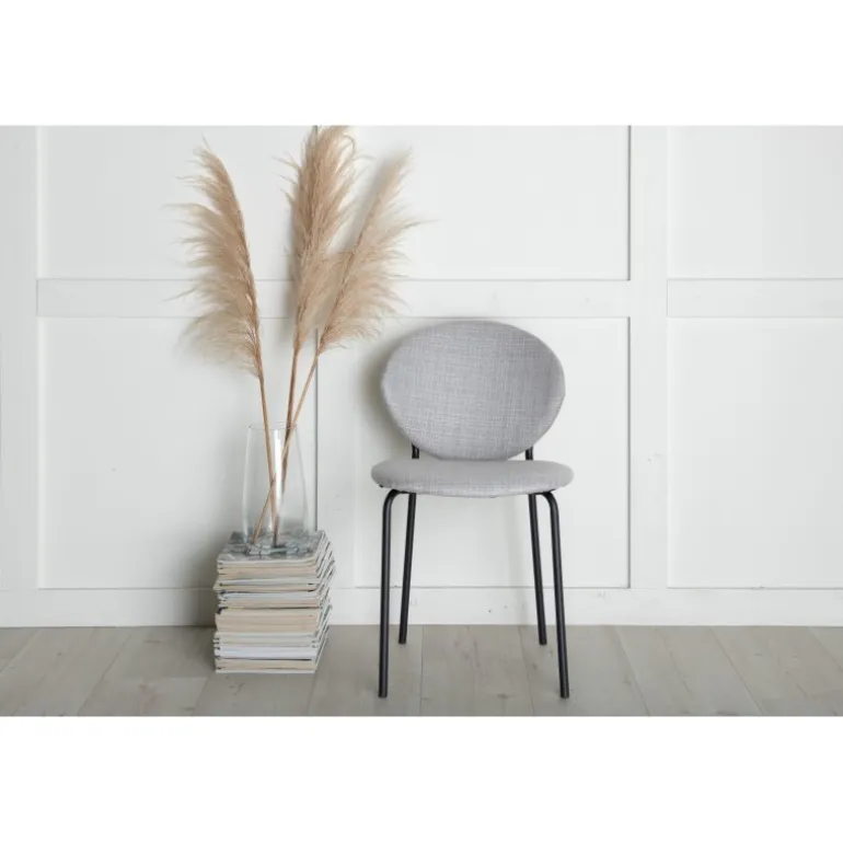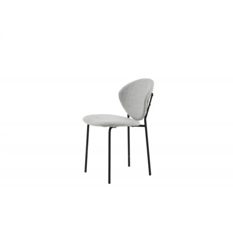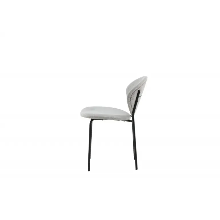 Tidløs spisebordsstol i gårsdagens farver og minimalistisk design fra serien Vault! Denne lækre spisebordsstol har en ramme og ben i sort pulverlakeret metal og en rundet ryg. Ryg og sæde er polstret i grå polyesterstof. Pynt dit hjem med komfortable stole, der er lige så stilfulde som praktiske med deres pæne størrelse! Lettere samling kræves. Plejeråd: Brug tekstilspray til at imprægnere stoffet, før du begynder at bruge det, det vil også gøre snavs og pletter lettere at fjerne i fremtiden. Fjern pletter med det samme, gnid ikke, men forsøg at suge dem op forsigtigt med en klud. Hvis pletterne ikke forsvinder, prøv en pletfjerner, som du først har afprøvet på en mindre synlig del af stoffet.