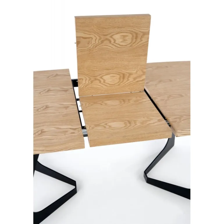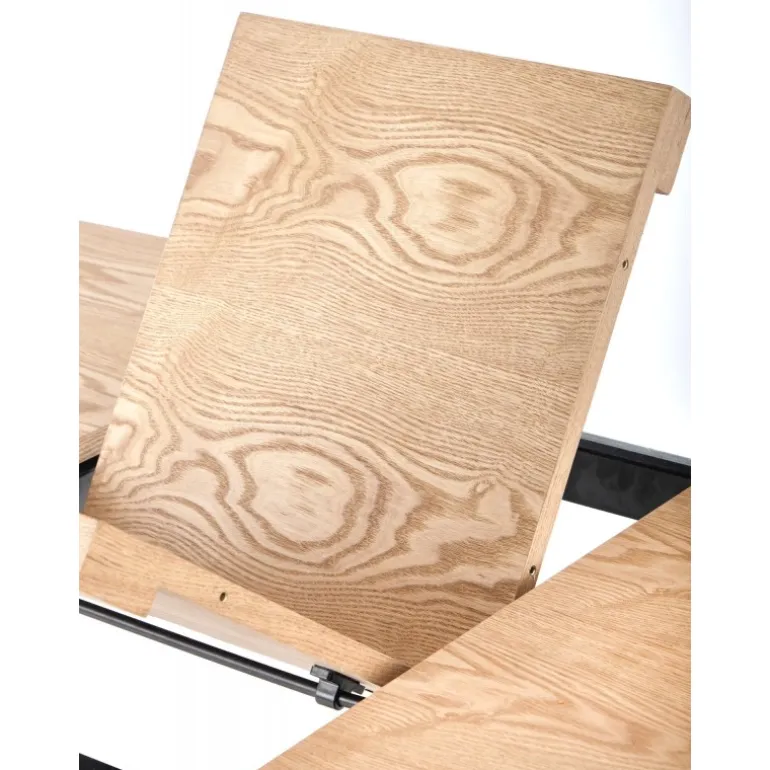 VELDON Spisebord med udtræk er det perfekte valg til både små og store sammenkomster. Med en justerbar længde fra 160 cm til 200 cm, kan dette bord let tilpasses dine behov. Bordpladen er lavet af MDF med naturlig finer, hvilket giver en elegant og holdbar overflade, mens de Sort pulverlakerede stålben sikrer stabilitet og et moderne look. Dette bord kombinerer funktionalitet og stil, hvilket gør det til en ideel tilføjelse til ethvert hjem.
