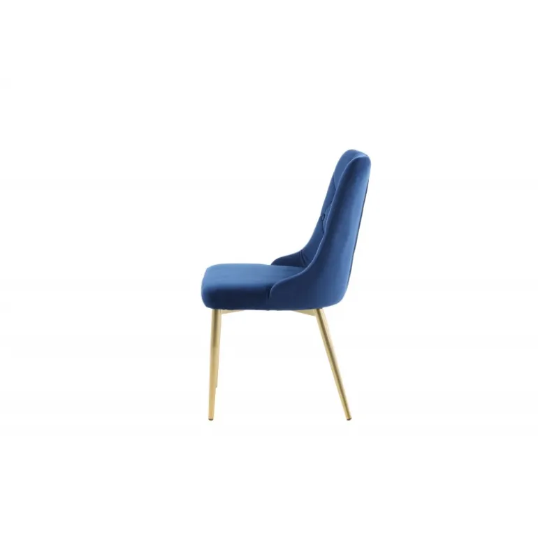 Indret hjemmets hjerte med spisebordsstole fra Velvet Deluxe-serien for et mere elegant fokuspunkt i stuen! Stolen har et fuldt polstret design i slankt blåt fløjlsstof med knapper og dekorative syninger i ryggen, hvilket tilføjer en stilfuld detalje. Benene er i messingbelagt metal og blød polstring i ryg og sæde for ekstra komfort. Sid både behageligt og stilfuldt! Nogle dele skal samles. Plejeinstruktioner: Fløjl har tendens til at udvikle trykmærker, når luven flades ud. Mærkerne kan få stoffet til at se slidt ud, hvilket er normalt for denne type materiale. Afhængigt af hvordan lyset falder, kan stoffet fremstå i flere forskellige nuancer.