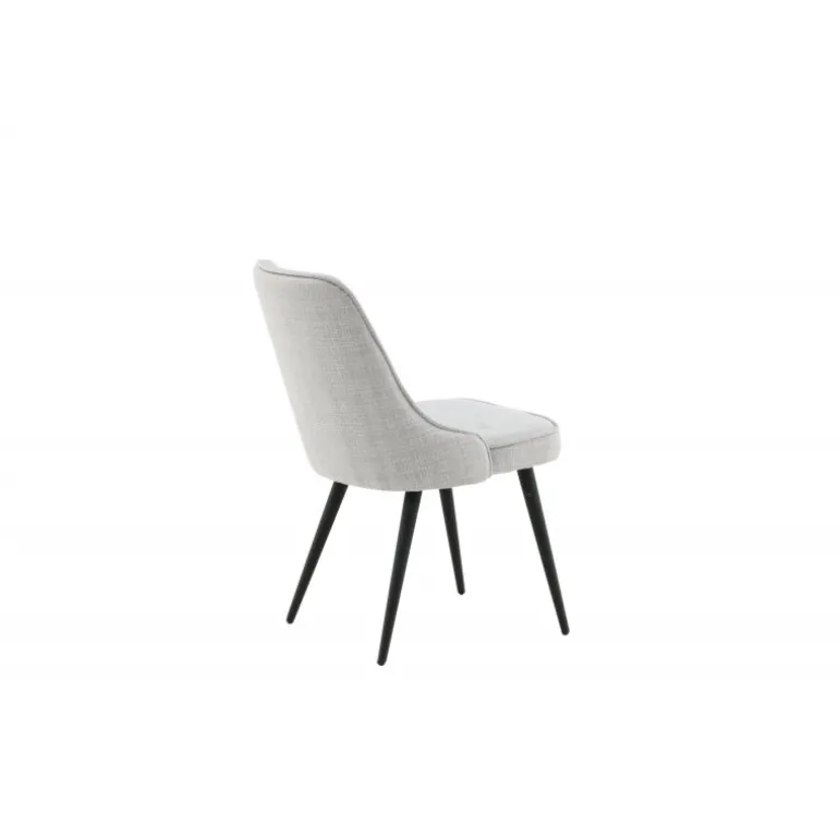 Komfortabel, stilfuld og holdbar spisebordsstol fra serien Velvet Luxury! Stolen har et fuldt polstret design i slankt gråt polyesterstof med knapper og dekorative syninger på ryggen, der skaber en flot detalje. Benene er i sort pulverlakeret metal, og der er blød polstring i ryg og sæde for ekstra komfort. Lettere samling er påkrævet. Skab en pompøs blikfang i stuen! Plejevejledning: Brug tekstilspray til at imprægnere stoffet, før du begynder at bruge det; det vil også gøre det lettere at fjerne snavs og pletter i fremtiden. Fjern pletter med det samme, gnid ikke, men forsøg at suge dem op forsigtigt med en klud.