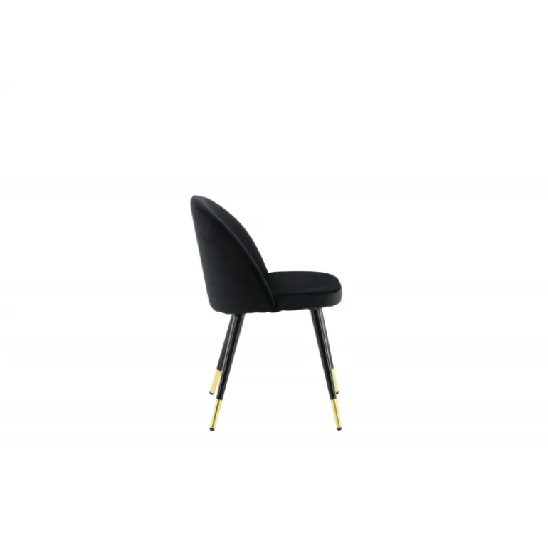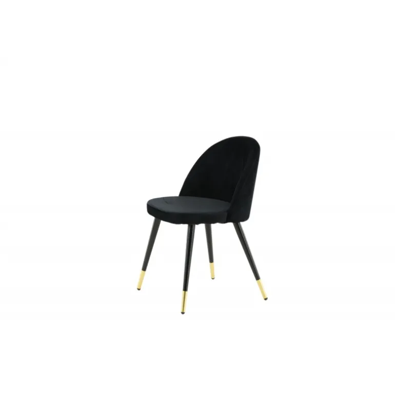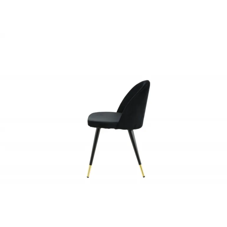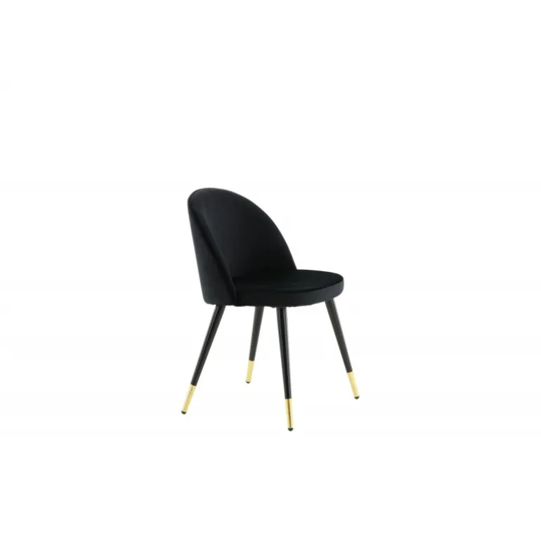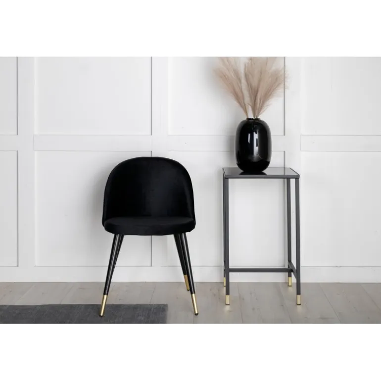 En elegant spisebordsstol med et luksuriøst touch! velour har et fuldt polstret design med ben i sort pulverlakeret metal og moderne messingbelagte benkapper. En let afrundet ryg og sæde i slankt sort velour med blød polstring for ekstra komfort. Nogle samlinger nødvendige. Invester i stole, hvor du ikke behøver at gå på kompromis mellem komfort og design! Plejeinstruktioner: velour har tendens til at få impressionsmærker, når luven sætter sig. Disse mærker kan få stoffet til at se slidt ud, hvilket er normalt for denne type materiale. Afhængigt af hvordan lyset falder, kan stoffet fremstå i flere forskellige nuancer.