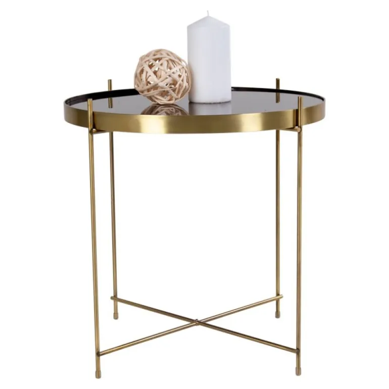 Hjørnebord i messing farvet stål med glasnø48xh48cm