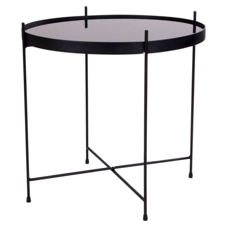 Hjørnebord i sort stål med glasnø48xh48cm