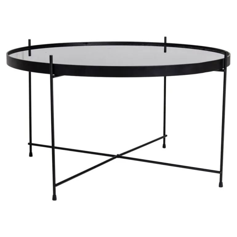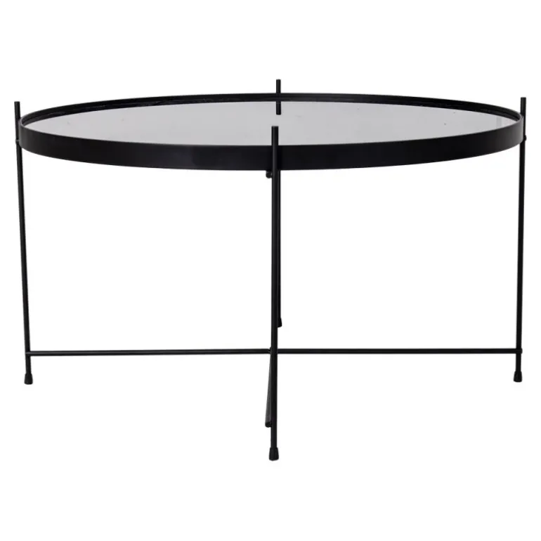 Hjørnebord i sort stål med glasnø70xh40cm