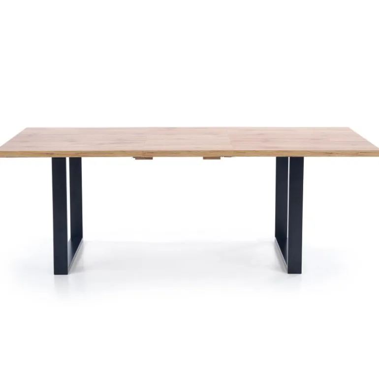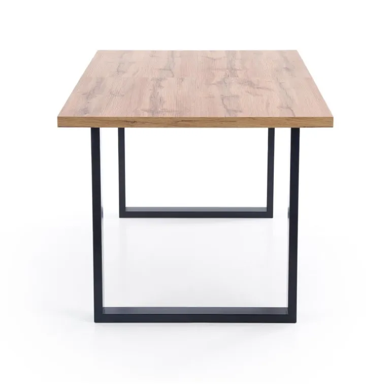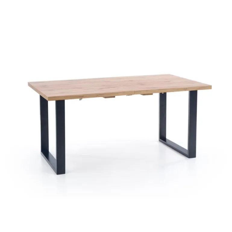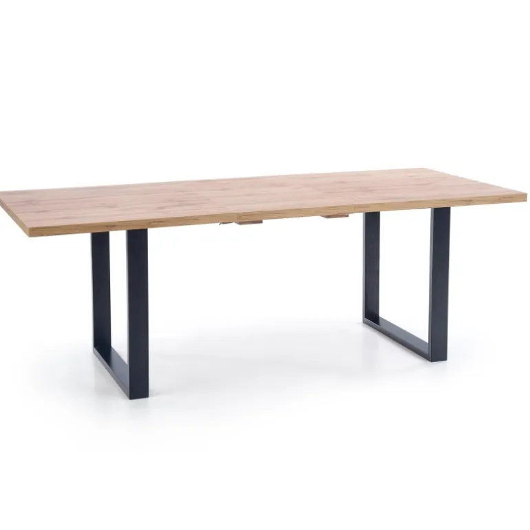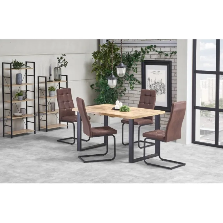 Oplev VENOM 135-185 Spisebord med udtræk, der kombinerer stil og funktionalitet til dit hjem. Med en længde, der kan justeres fra 135 cm til 185 cm, er dette bord perfekt til både intime middage og større sammenkomster. Bordpladen er lavet af lamineret spånplade med ABS plastkanter, hvilket sikrer en lang levetid og nem vedligeholdelse. Benene er fremstillet af pulverlakeret stål i en elegant Sort farve, der giver en moderne kontrast til bordpladens Votan-eg farve. Med en robust konstruktion og et tidløst design er dette Spisebord med udtræk et must-have i ethvert hjem.