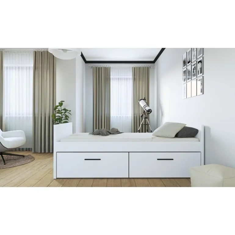 VERSO BAZA seng i hvid den perfekte løsning til børneværelset. Denne seng er fremstillet af lamineret spånplade og har et moderne og stilrent design, der nemt passer ind i ethvert interiør. Med dimensionerne 213/95/77 cm tilbyder denne seng god plads og komfort. Sengen leveres uden madras, men du har mulighed for at tilkøbe , for en komplet løsning. Denne modulopbyggede seng inkluderer en robust ramme, der sikrer langvarig holdbarhed.