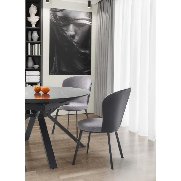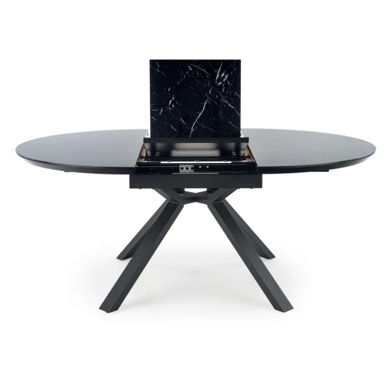 VERTIGO Spisebord med udtræk er det perfekte valg til din spisestue eller køkken. Med en top i Sort marmor og ben i Sort, kombinerer dette bord elegance og funktionalitet. Bordet kan nemt udvides fra 130 cm til 180 cm, hvilket gør det ideelt til både små og store sammenkomster. Lavet af glas, lakeret MDF, og pulverlakeret stål, sikrer det holdbarhed og stabilitet. De elegante materialer og den sofistikerede farve gør det til et iøjnefaldende møbel i ethvert hjem.
