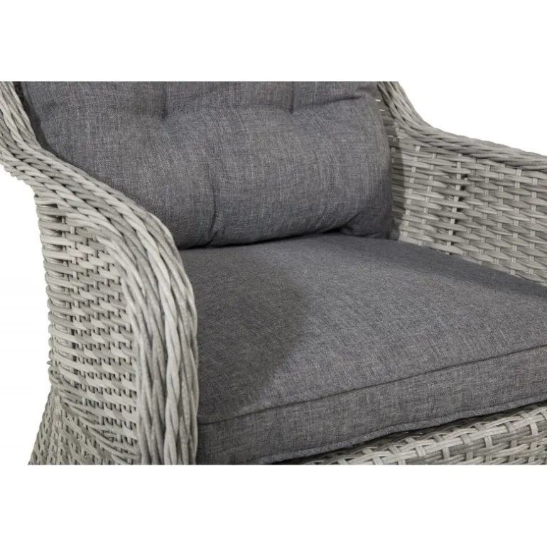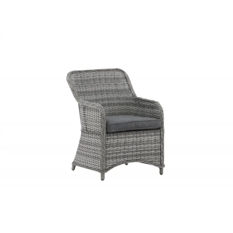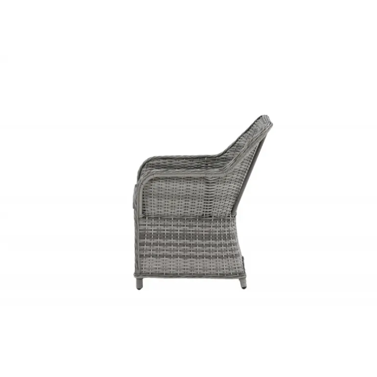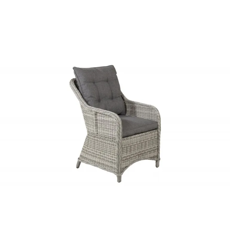 Vikelund, en meget stabil armstol i moderne grå kunstig rattan. Den robuste konstruktion og holdbare materiale giver dig en stol, der holder over tid. Ryglænet kan nemt lægges ned, og de høje armlæn gør, at du sidder komfortabelt tæt på bordet. Nyd mange vidunderlige sommeraftener sammen! Plejeråd: Konstrite er et plastmateriale, der er perfekt til vores skandinaviske klima. Materialet er UV-resistent og kan modstå vejr og vind. UV-resistensen betyder, at møblerne ikke falmer, men vi anbefaler altid at opbevare møblerne under et møbelovertræk eller et andet tørt og køligt sted for at forlænge levetiden.