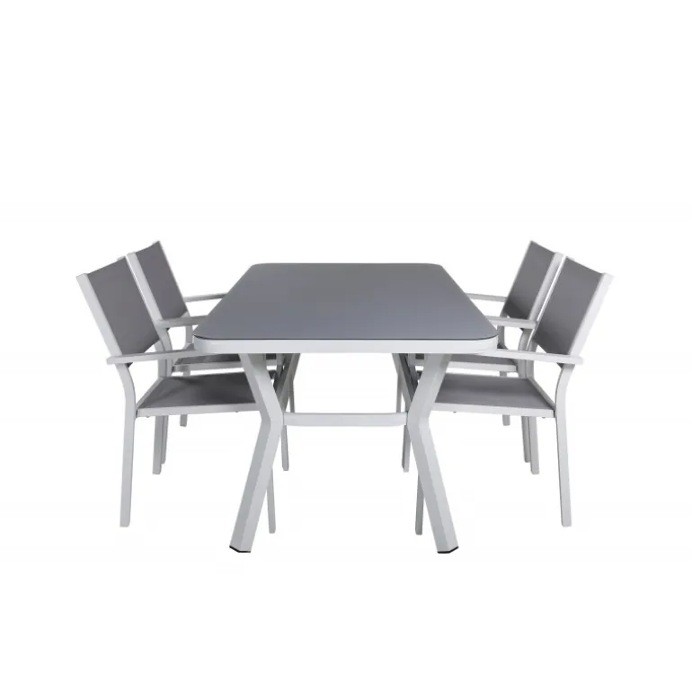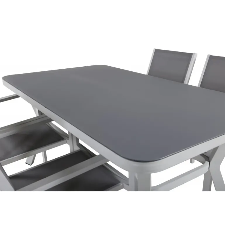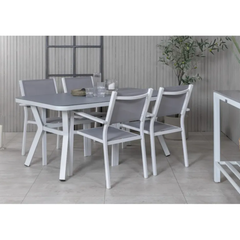 Klassisk madgruppe der passer til de fleste terrasser! Spisebordet Virya sammen med stole fra Copacabana-serien er som skabt til dem, der ønsker at skabe en hyggelig og moderne stemning på altanen. Høj kvalitet og stilfuldt design gør dette sæt til det perfekte valg for udendørs spisning.