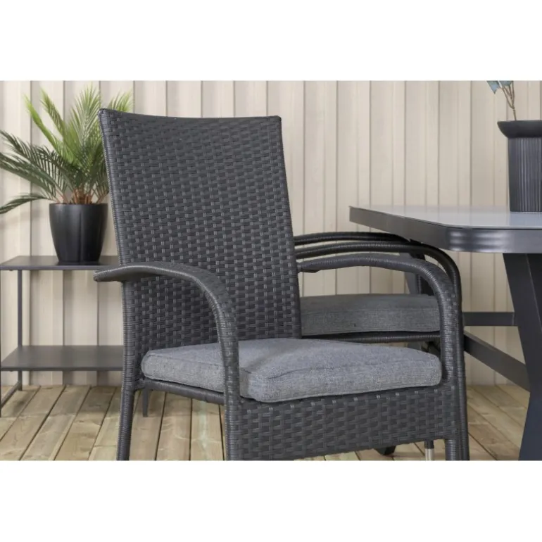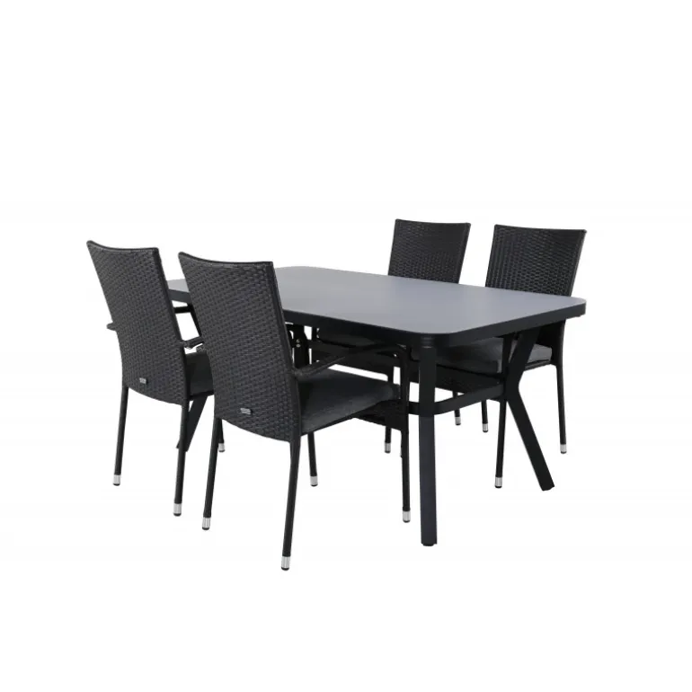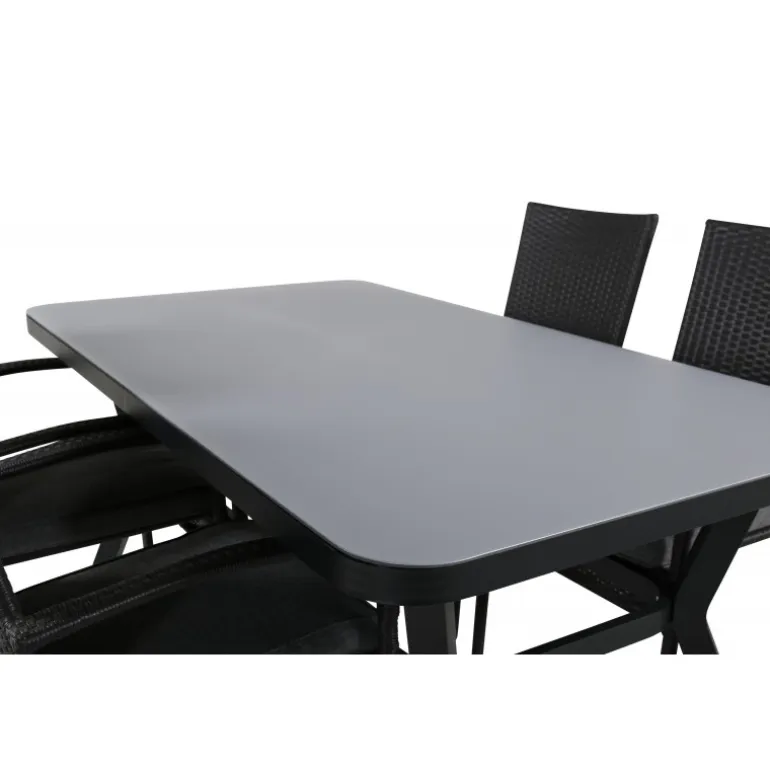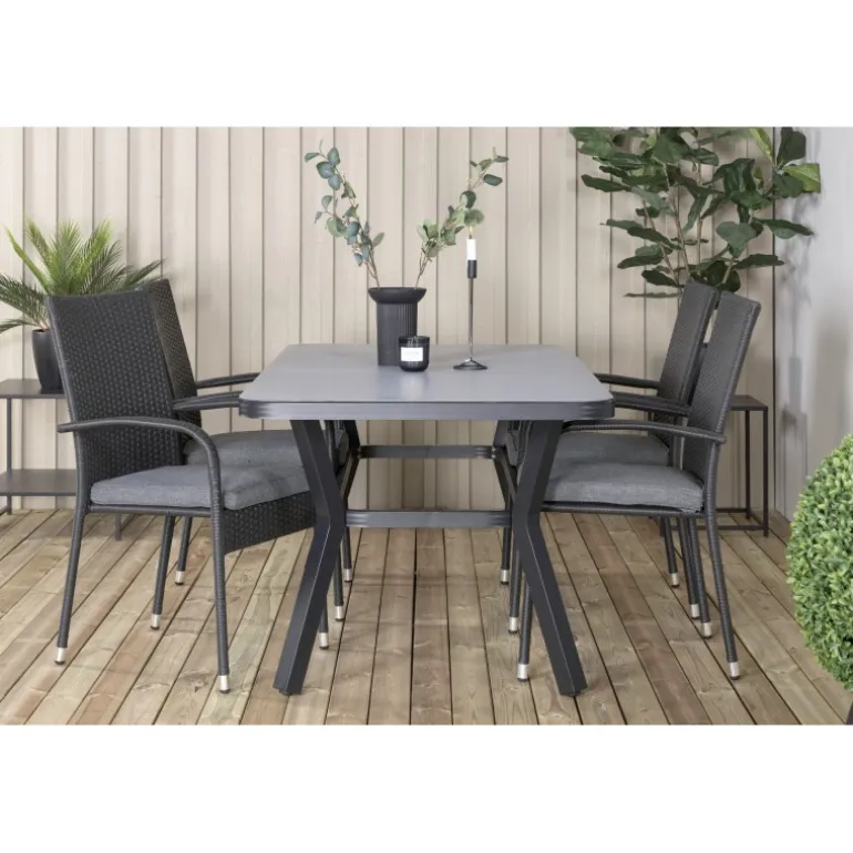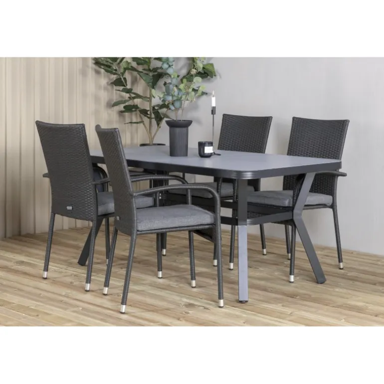 Det klassiske Virya Rektangulære Loungesæt – Havemøbelsæt passer perfekt til de fleste terrasser! Spisebordet Virya sammen med stolene i Anna-serien er skabt til dem, der ønsker at skabe en hyggelig og moderne atmosfære på altanen. Aluminiumsrammen og spraystone bordpladen sikrer både holdbarhed og stil. Stolene er lavet af rattan og stål for maksimal komfort og stabilitet. Dette sæt er ideelt for dem, der elsker at nyde udendørs måltider med familie og venner.