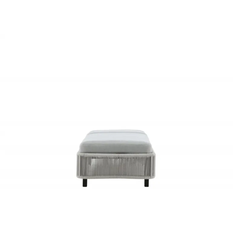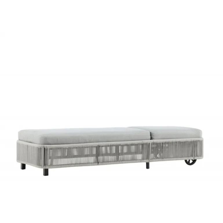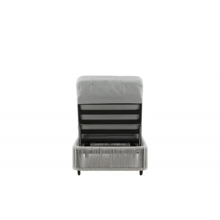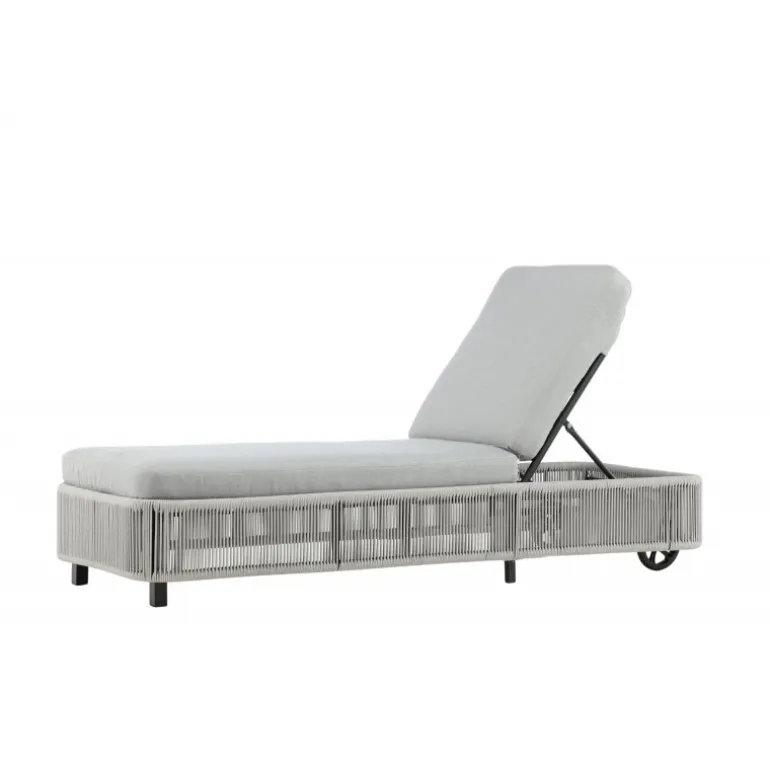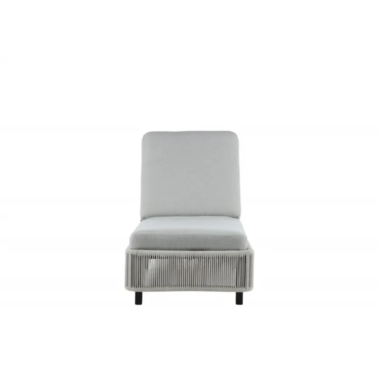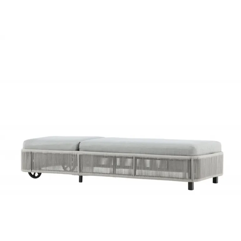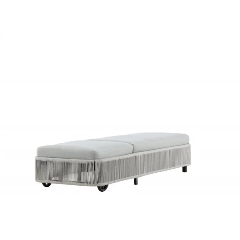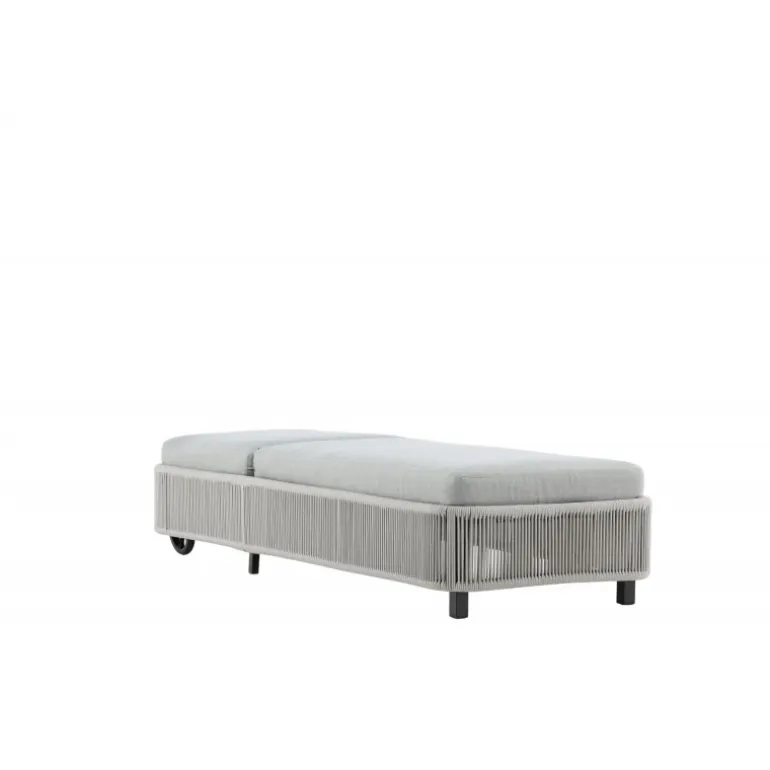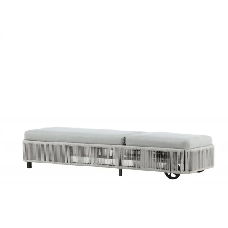 En klassisk solseng fremstillet af grå reb med tilhørende hynder. Placer den præcis hvor du vil, og flyt den nemt ved hjælp af hjulet. Nyd en varm sommerdag i solen på denne komfortable solseng. Fremstillet af holdbart aluminium, der ikke ruster, og leveres med hynder for ekstra komfort.