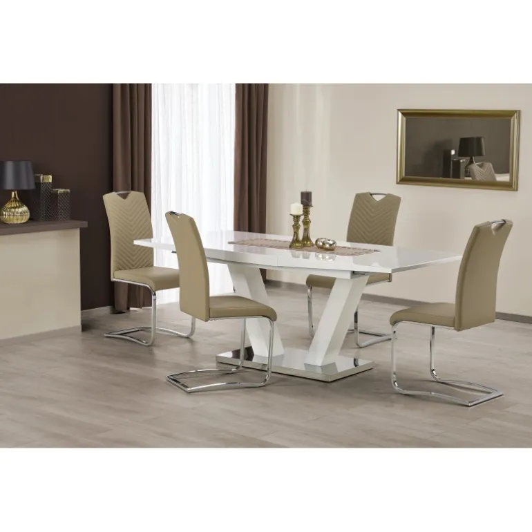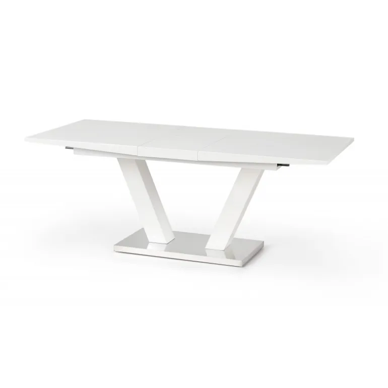 Oplev den perfekte blanding af stil og funktionalitet med VISION bordet. Dette forlængelsesbord er ideelt til både små og store sammenkomster, da det kan udvides fra 160 cm til 200 cm. Fremstillet af lakeret MDF og rustfrit stål, tilbyder dette bord en slank og moderne løsning til dit hjem. Bordet har en elegant hvid farve, der passer ind i enhver indretning.