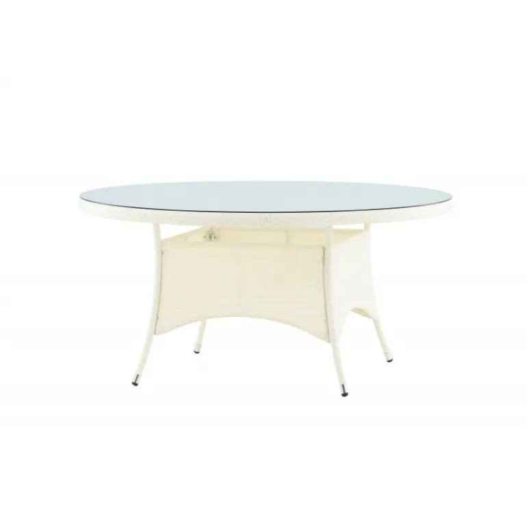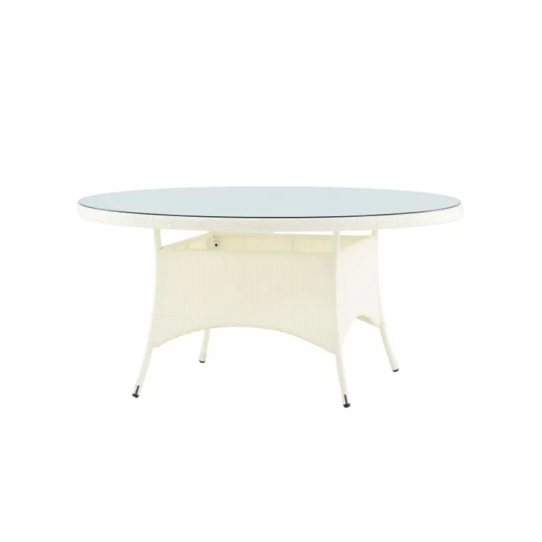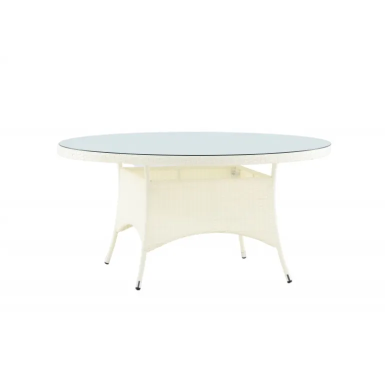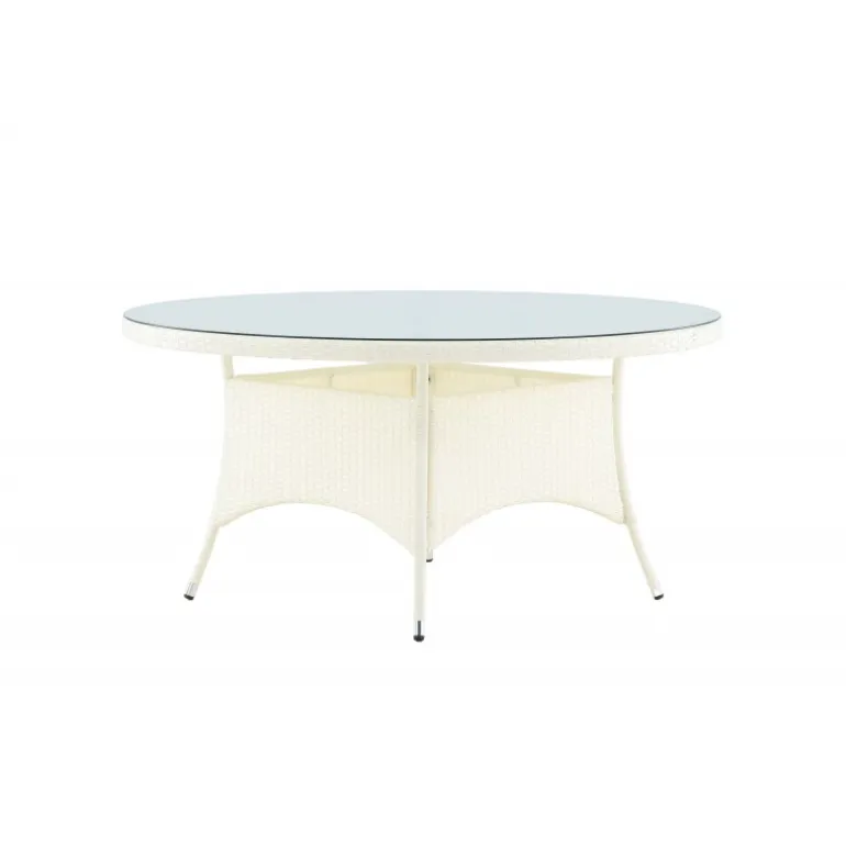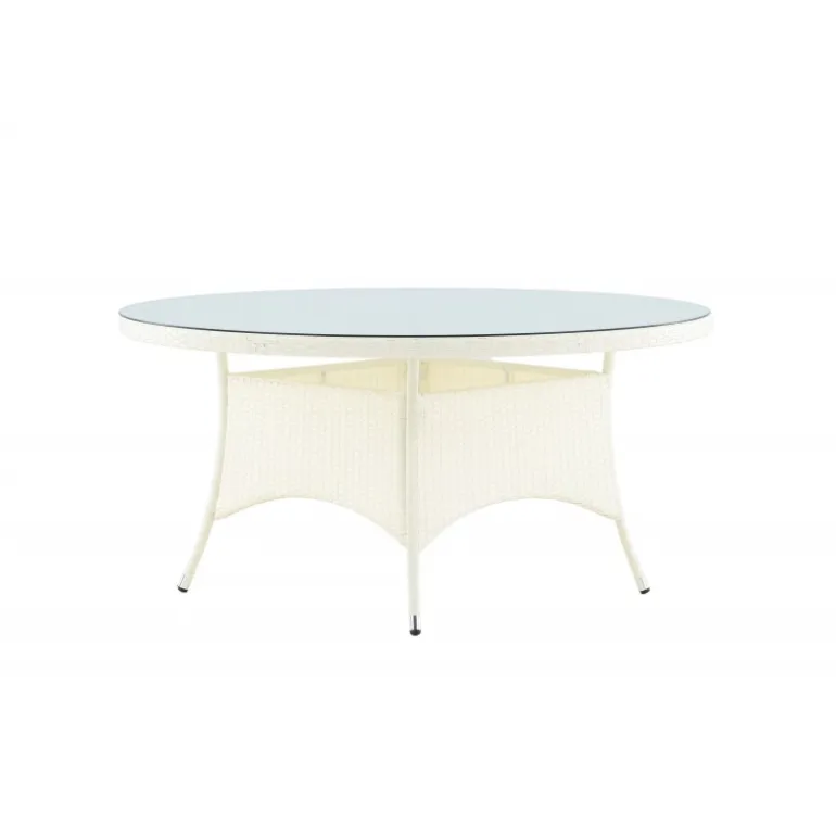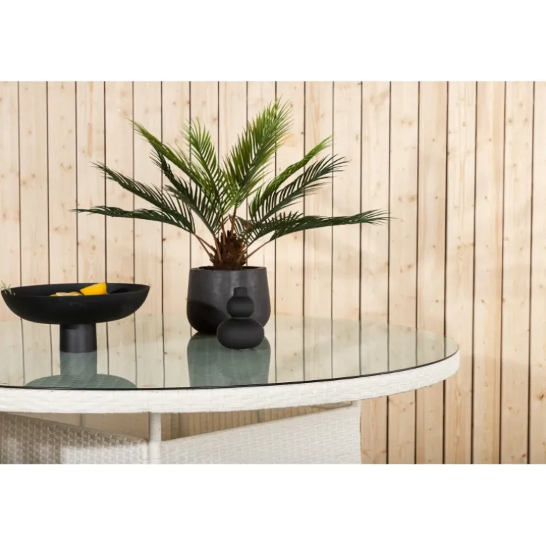 Volta er et rundt spisebord i et robust design, der giver et holdbart og charmerende indtryk! Bordpladen er i stilfuldt glas, og understellet er i holdbar, hvid kunstig rattan. Indret udendørsområdet eller terrassen og lad udendørsmiddagene blive dagens højdepunkt – her ender ingen på kanten! Plejevejledning: Kunstig rattan er et plastmateriale, der er perfekt til vores skandinaviske klima. Materialet er UV-resistent og kan modstå vejr og vind. Det betyder, at møblet ikke falmer, men vi anbefaler altid at opbevare møblet under et møbelovertræk eller på et tørt og køligt sted for at forlænge levetiden.