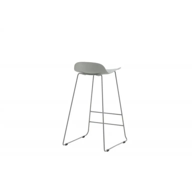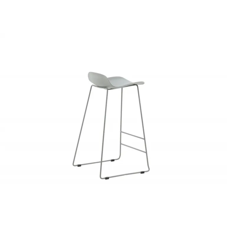 En stilfuld barstol i minimalistisk skandinavisk design fra Wave-serien vil helt sikkert blive et hit i hjemmebaren! Denne barstol kommer i en behagelig grå farve, med grå pulverlakeret metalstand, integreret fodstøtte for ekstra siddekomfort og lav ryg og sæde i grå fuldstøbt plast. Lettere samling er nødvendig. Plejeanvisning: Plastik er et taknemmeligt materiale at tørre og rengøre. Brug en fugtig klud og et mildt rengøringsmiddel til rengøring.