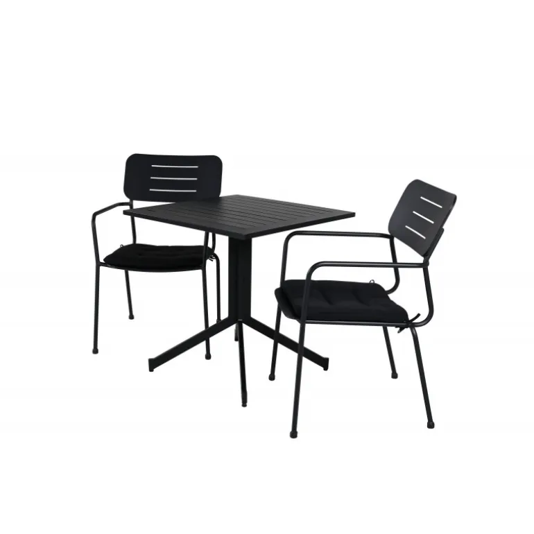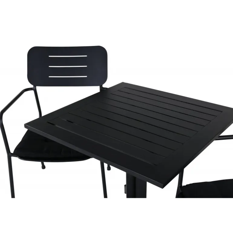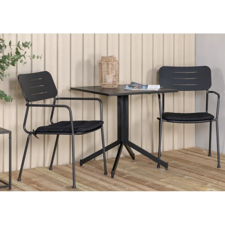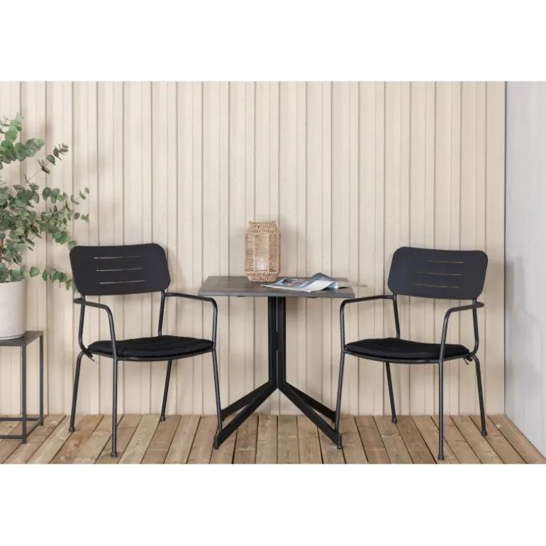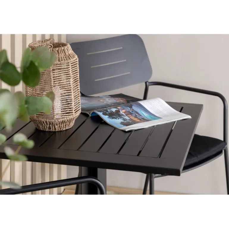 Vores fleksible spisbord Way er perfekt til eftermiddagskaffen! Her i kombination med stilfulde spisebordsstole fra Nicke serien. Nyd en kop kaffe eller et køligt glas juice på din terrasse med denne trendy Loungesæt – Havemøbelsæt i stilfuld sort farve.