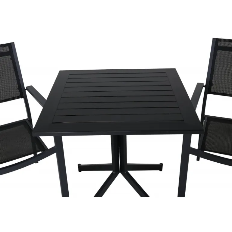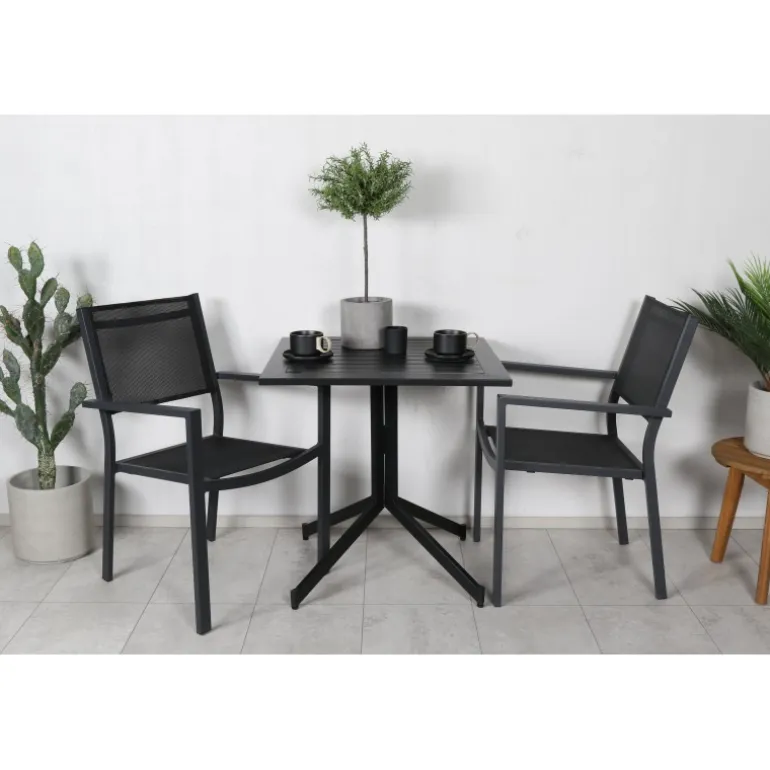 Et perfekt matchende madgruppe til to! Bordet er fra Way-serien og er kombineret med spiseborde Copacabana. Denne pæne kombination passer nemt ind i de fleste miljøer og giver en rolig og behagelig følelse. Møbler på terrassen eller altanen for at skabe det perfekte kaffested på en vidunderlig sommerdag.