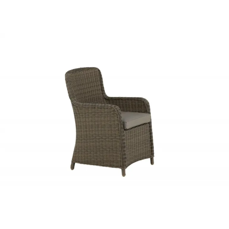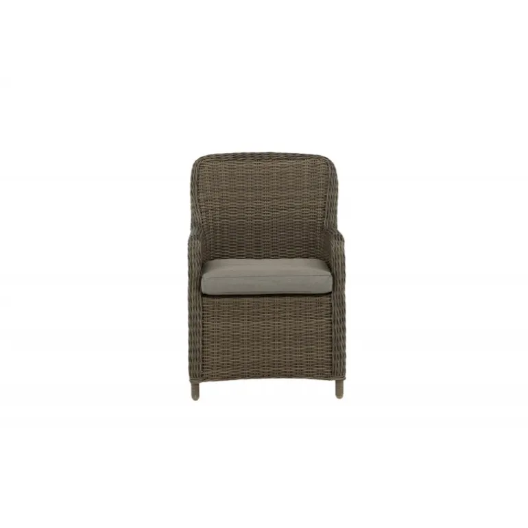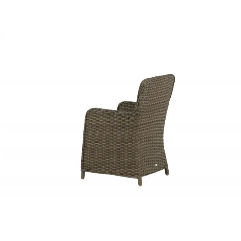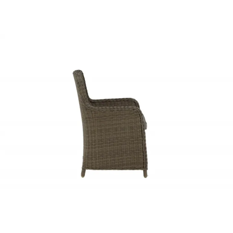 Stilfuld armstol i beige kunstig rattan. Stolen er en ægte klassiker og passer ind i de fleste husholdninger. Med høje armlæn bliver stolen behagelig at sidde i tæt ved bordet. Perfekt til udendørs brug, denne stol kombinerer æstetik og funktionalitet. Den er UV-resistent og kan modstå vejr og vind.