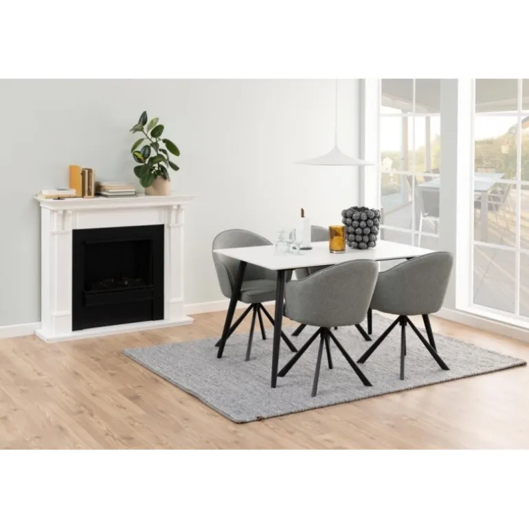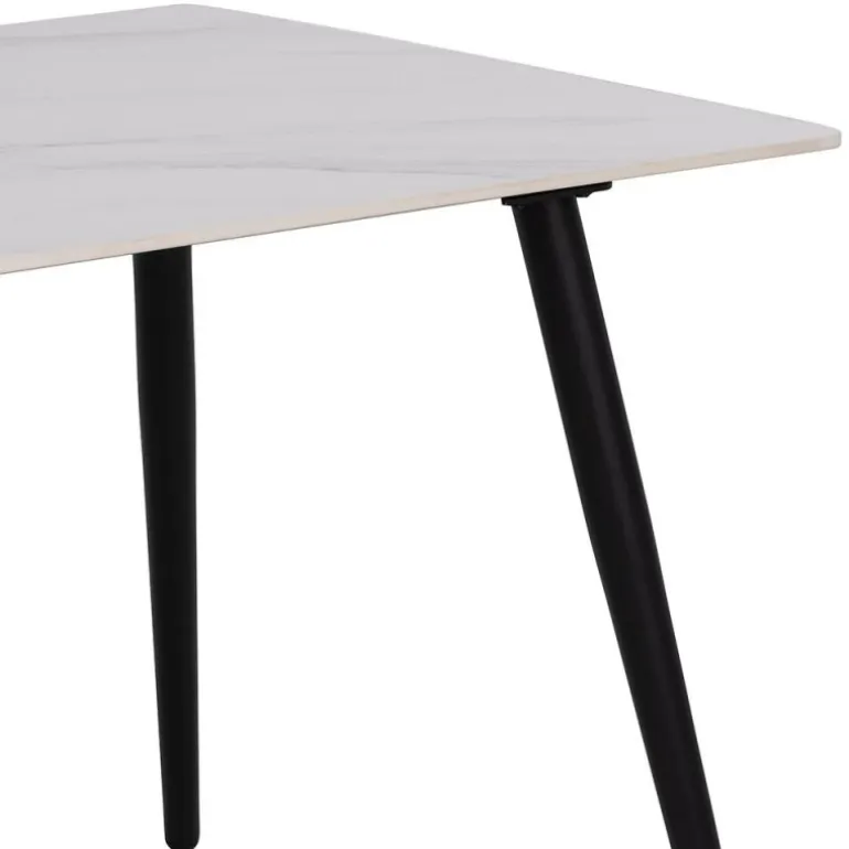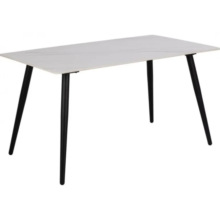 Wicklow spisebord bordplade keramik Lincoln mat hvid, 12 mm, stel metal pulverlakeret ru mat sort, L:140 B:80 H:75 cm