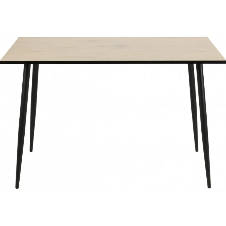 Wilma spisebord melamin vild eg white wash, 3 kant sort, stel metal ru pulverlakeret, mat sort, 5 L:120 B:80 H:75 cm