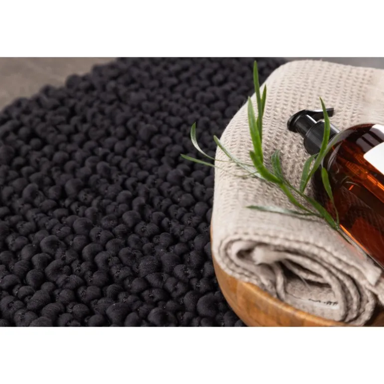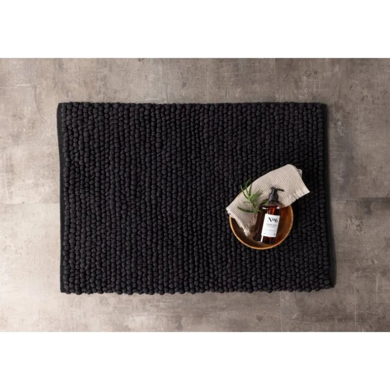 Nyd en uforglemmelig oplevelse af ren komfort og unik håndvævet kvalitet med Wilmer bademåtte. Lavet af bomuld og polyester, omfavner denne bademåtte dine fødder med en varm og behagelig fornemmelse hver gang du træder på den. Den håndvævede konstruktion giver Wilmer en eksklusiv karakter med sin specielle løkkevævning, der ligner små kugler, hvilket skaber et yndigt og legende udtryk. Tilføj et strejf af stil og elegance til dit badeværelse med den rektangulære Wilmer bademåtte, der måler 50×80 cm. Dens smukke poppende design skaber en elegant og fornøjelig detalje, der subtilt og stilfuldt komplementerer din badeværelsesindretning. Wilmer i sort farve bringer en følelse af modernitet og elegance til dit badeværelse, som du nemt kan matche med andre badeværelsestilbehør. Tjek vores andre måtter i Wilmer serien og find din favorit! Vi tilbyder forskellige farver, så du kan finde det perfekte match til din personlige stil og badeværelsesindretning.