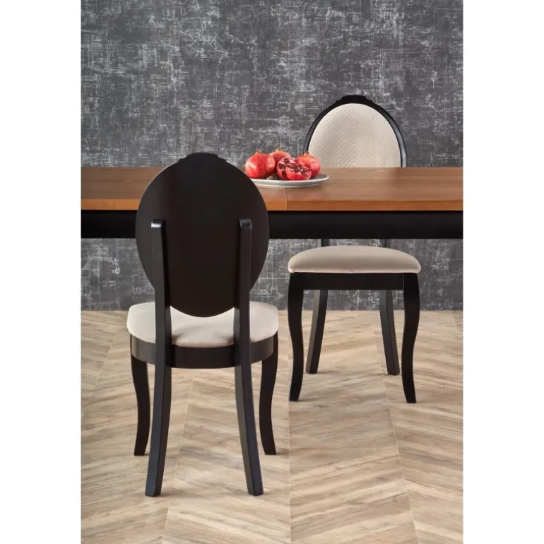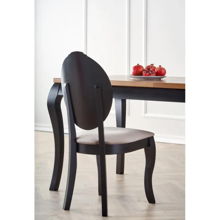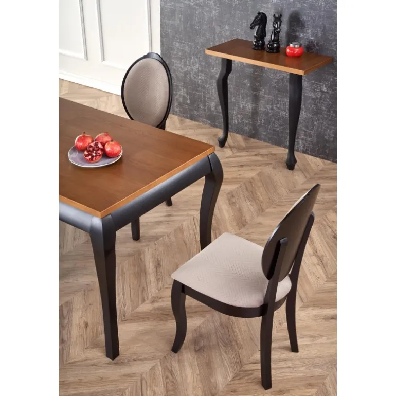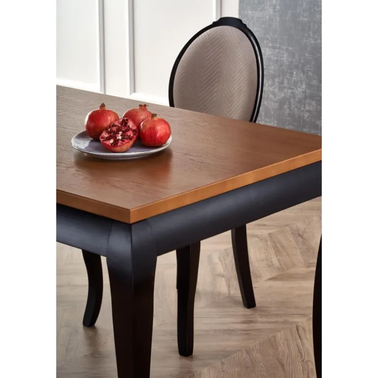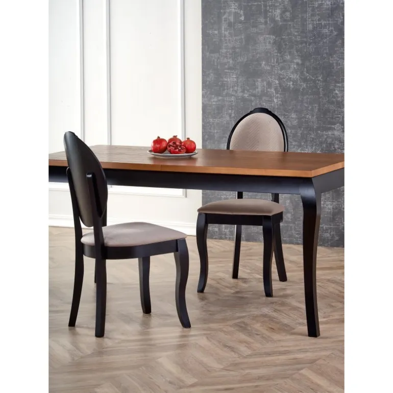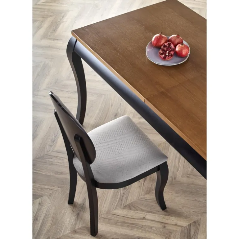 Oplev WINDSOR Spisebord med udtræk i stilfuld mørk eg og Sort, perfekt til både moderne og klassiske hjem. Dette bord kan nemt udvides fra 160 cm til 240 cm, hvilket gør det ideelt til både små og store sammenkomster. Bordpladen er lavet af møbelplade med naturlig egetræsfinér, mens benene er fremstillet af massivt bøgetræ, hvilket sikrer holdbarhed og lang levetid. Med sit elegante design og praktiske funktioner er WINDSOR bordet en fremragende tilføjelse til enhver spisestue.